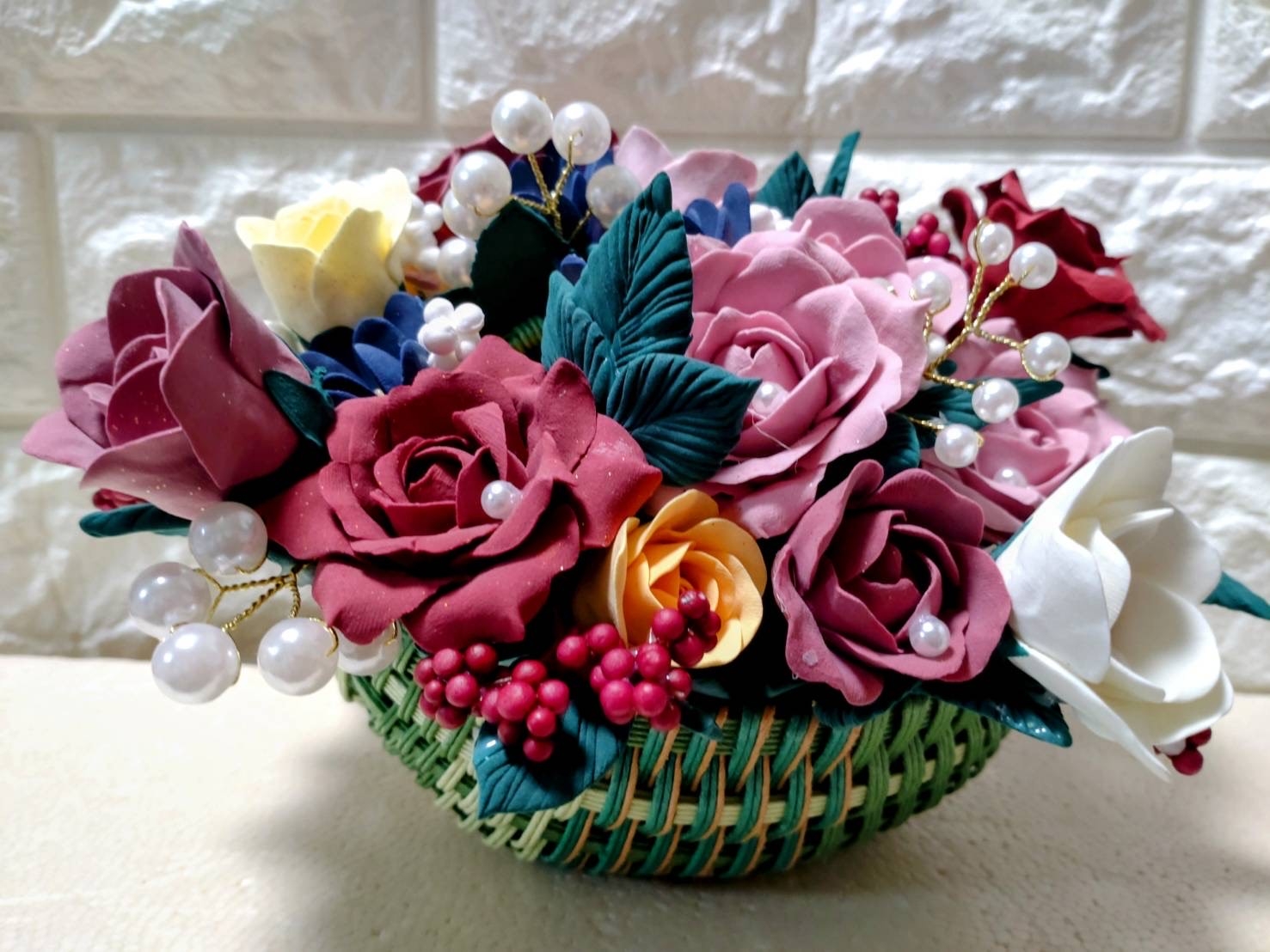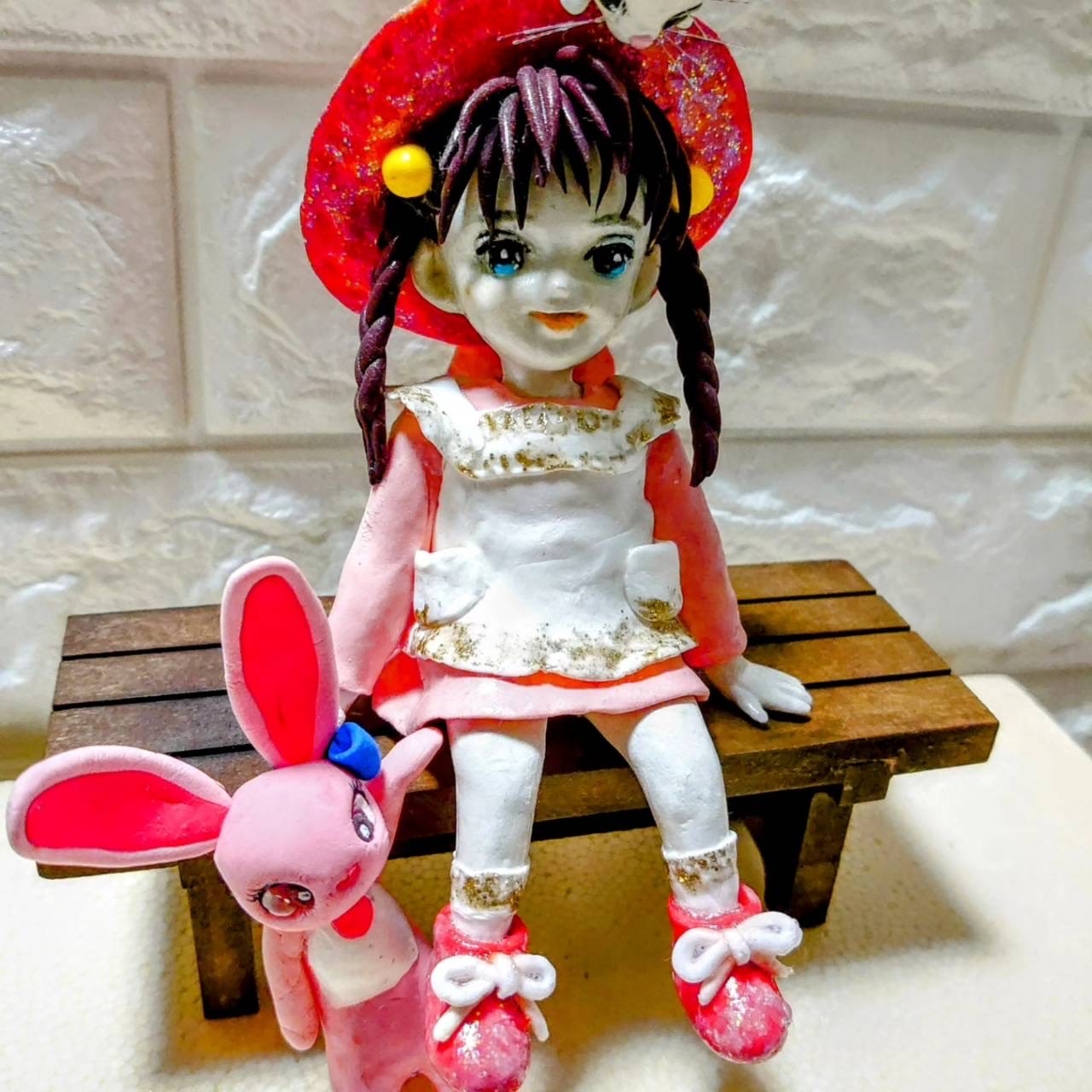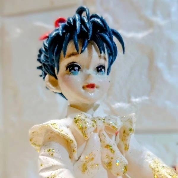 ステンドグラス作品と粘土による人形や、薔薇の花を造形しています。 可愛い、とキラキラをコンセプトにしています。