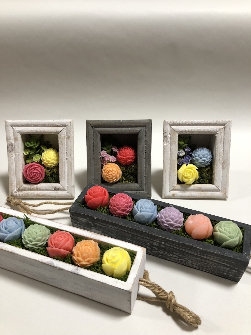 石鹸、キャンドルなどを専用ナイフで彫刻した作品になります 樹脂粘土細工:樹脂粘土で多肉植物等を製作しました 他、手作り作品