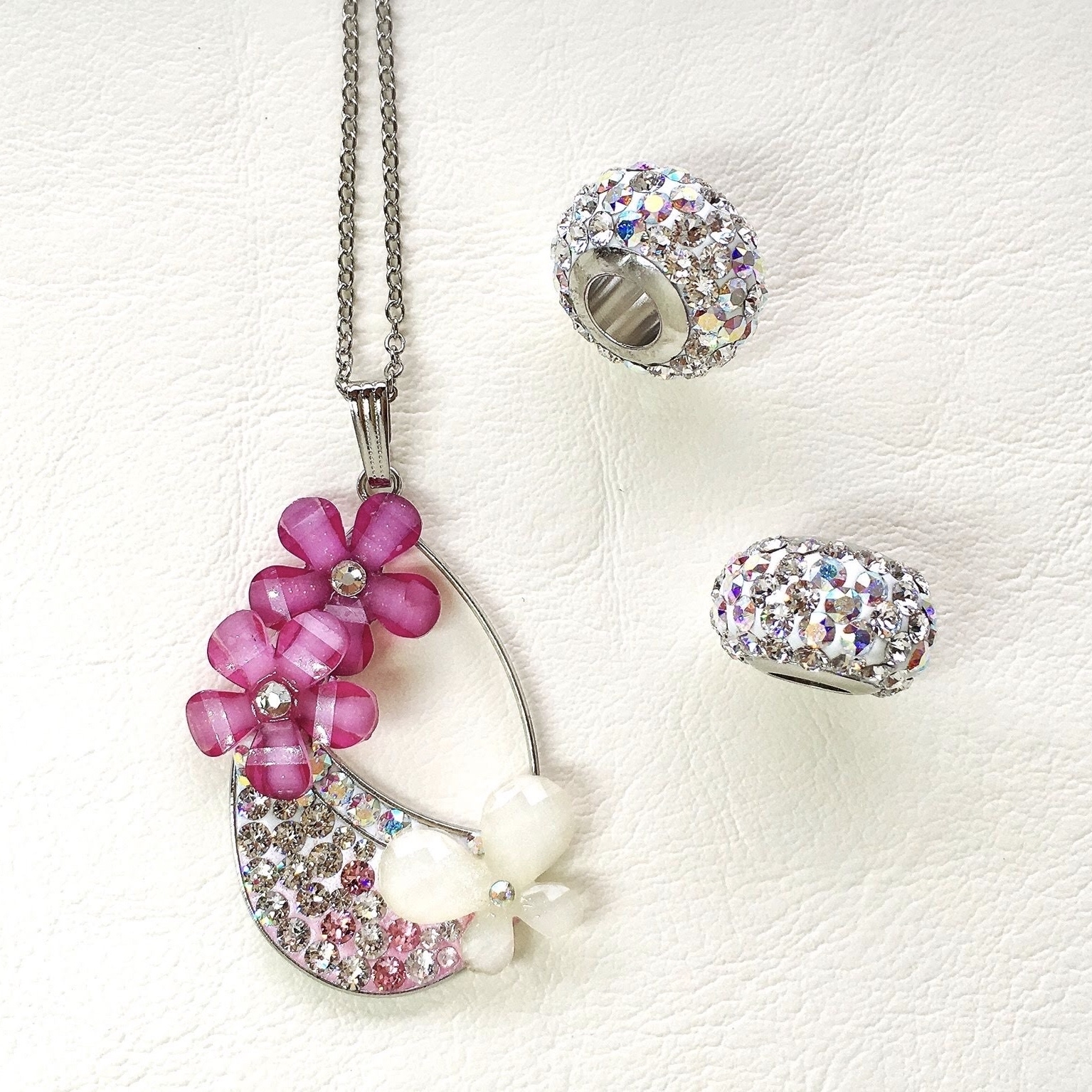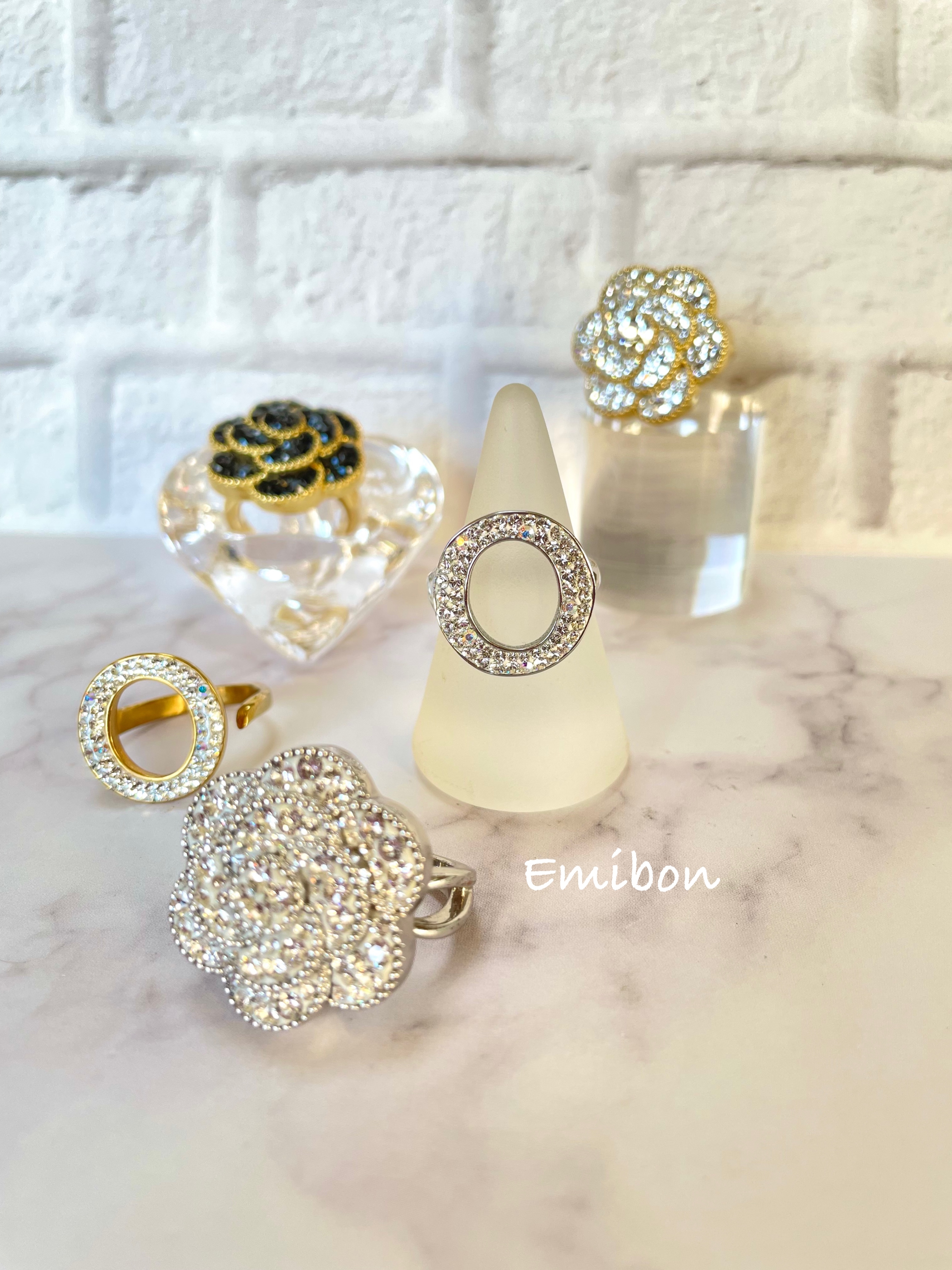 特殊な粘土状の接着剤にキラキラ光るダイヤのようにカットされた高品質のクリスタルを埋め込みオリジナルのアクセサリーを作っています。