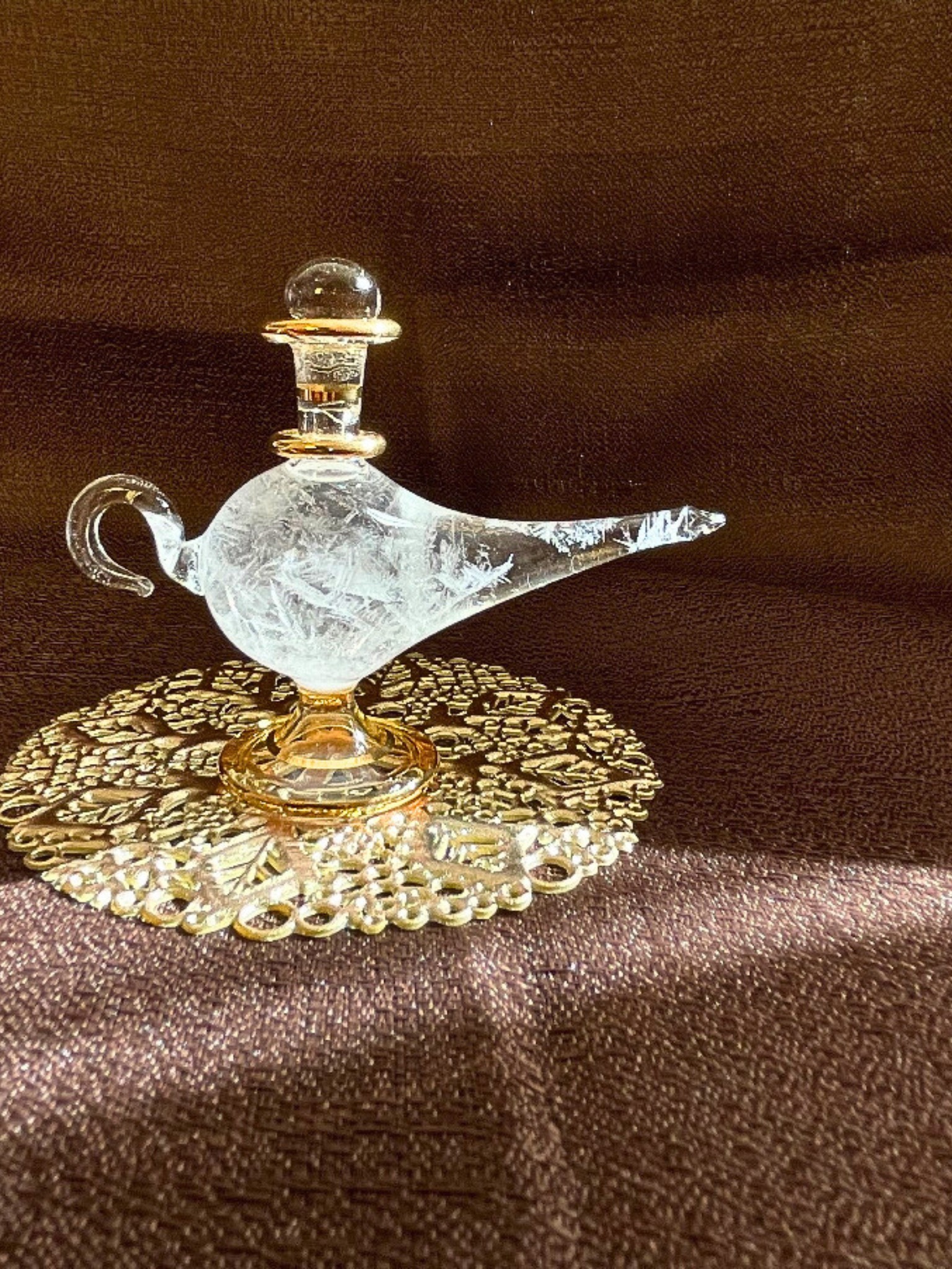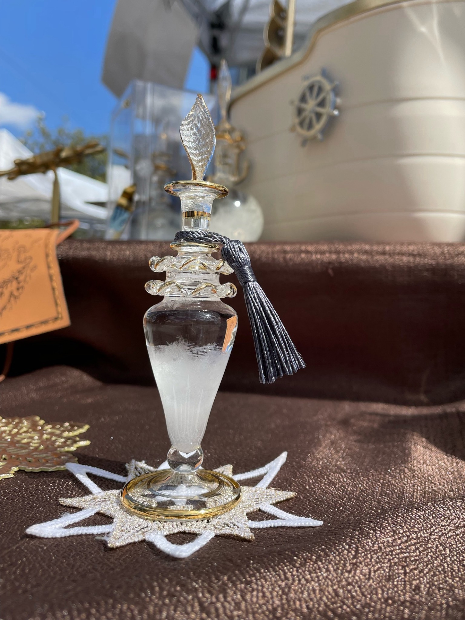 天気でガラスビンの中の結晶が変化する不思議なインテリア 魅惑的なエジプシャングラスに結晶を閉じ込めました。繊細なガラスビンのつくりと結晶が織りなす模様をお楽しみいただけます。
