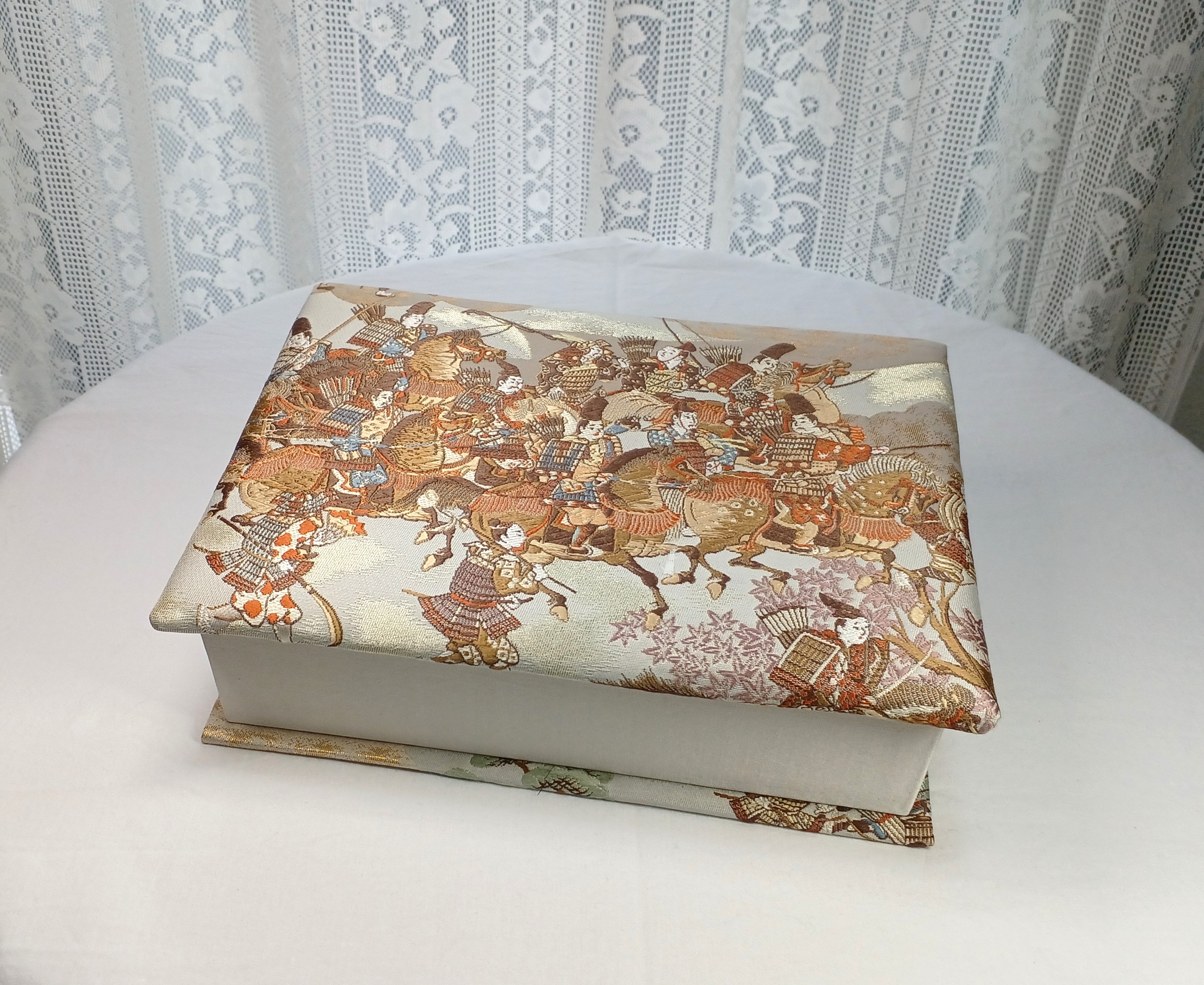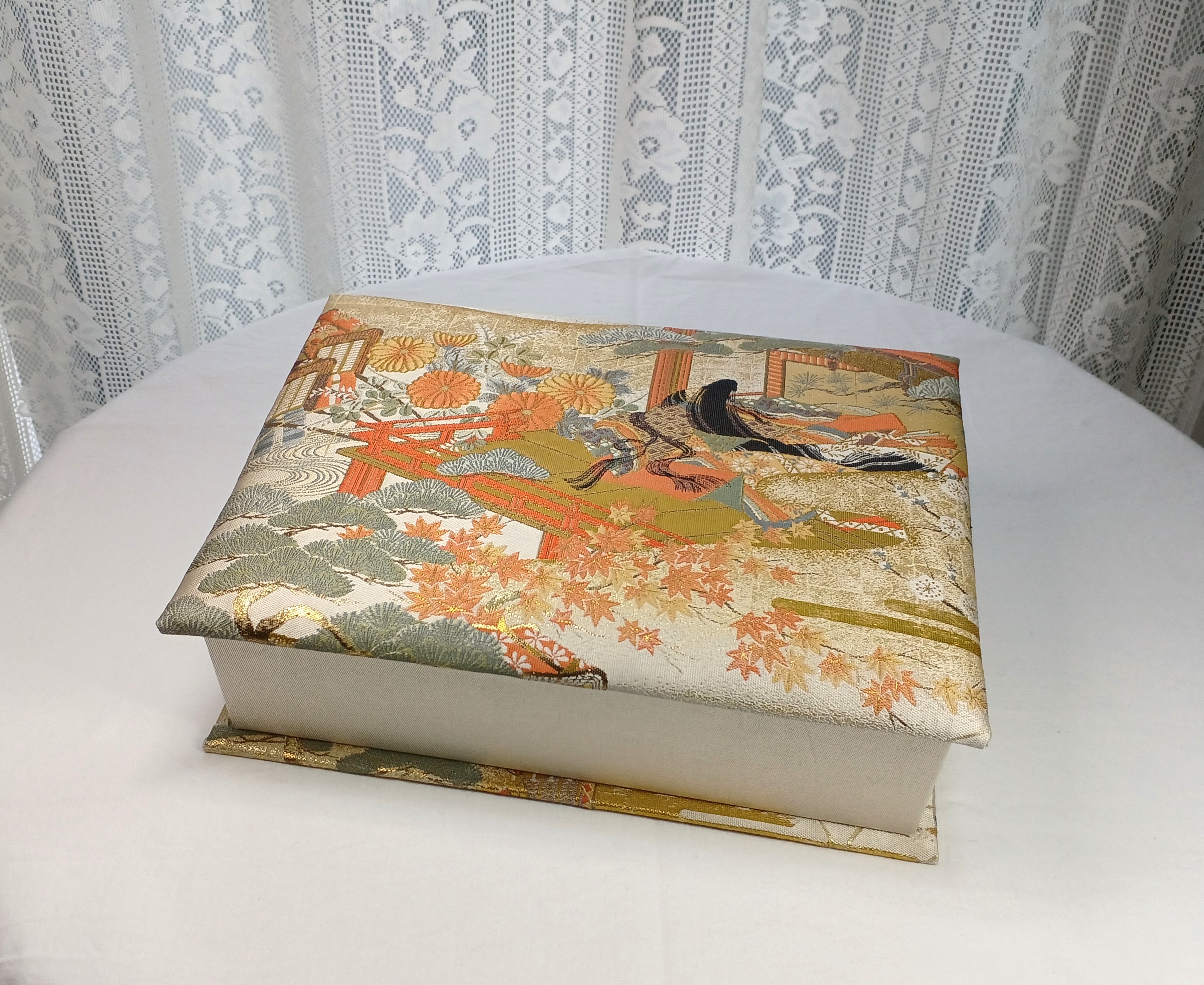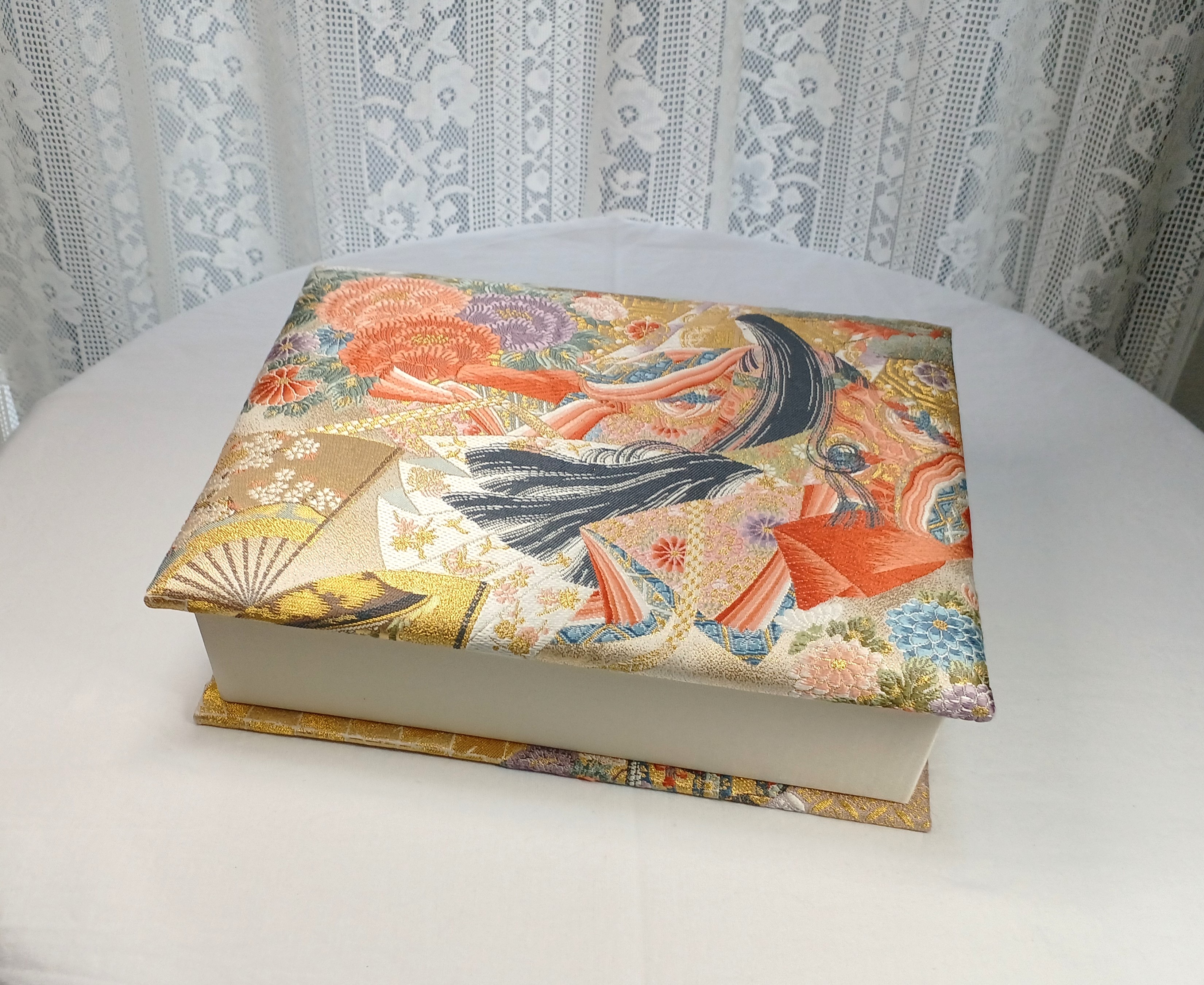 箱に布や紙をきれいに貼ったものです。