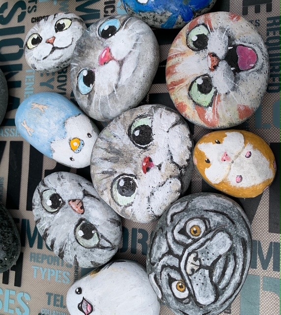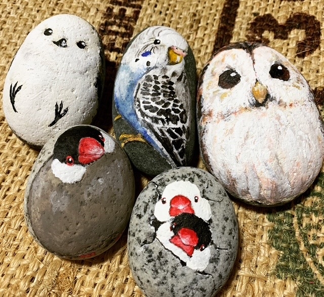 海で探してきた石ころに絵を描いた“石ころアート”です。色々描いておりますのでお気に入りの一点をみつけてもらえれば幸いです。