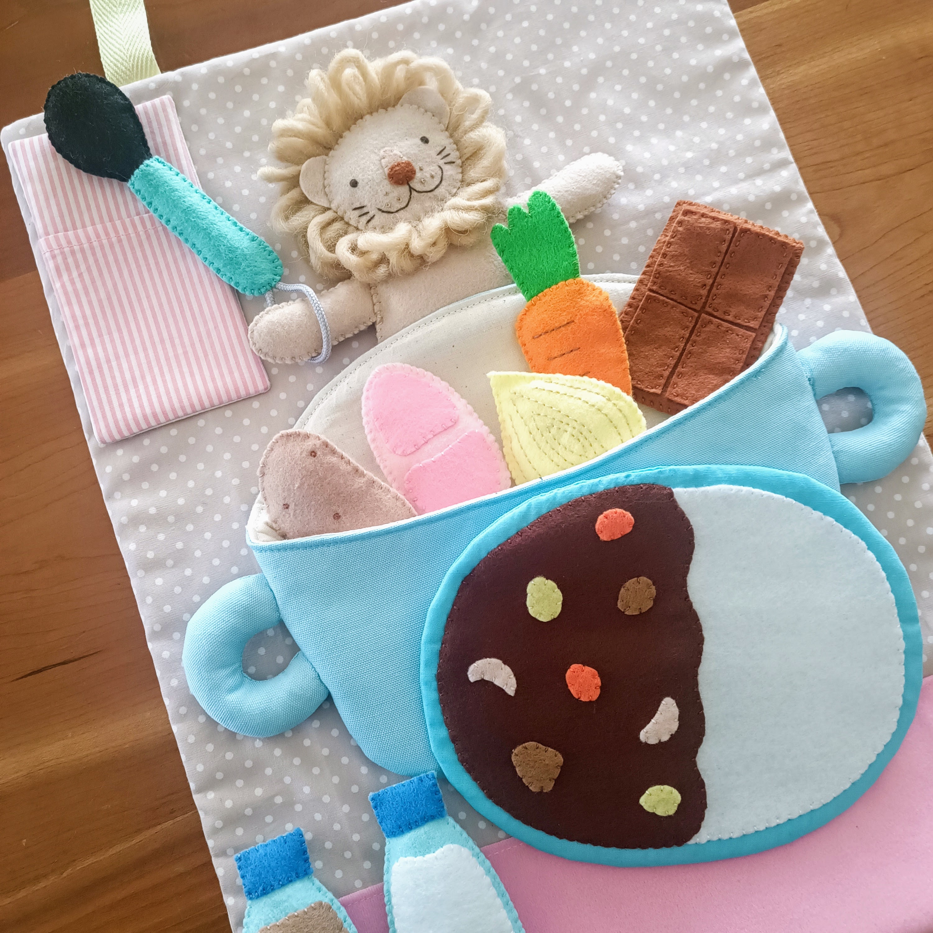 布おもちゃは、布やフェルトを使い、ぬくもり溢れる優しい感じの作品に仕上げています。手袋シアターやエプロンシアターなどの保育グッズは、マジックテープがくっつく特殊な生地を使い、アレンジできるように仕上げています。