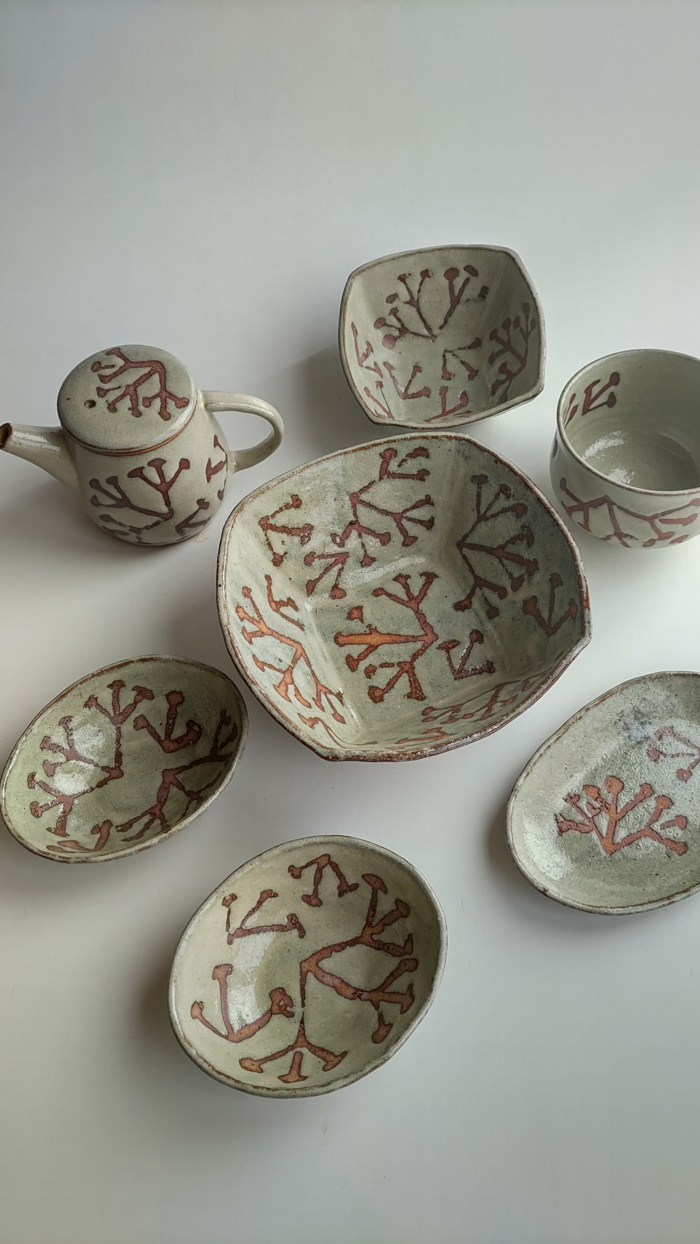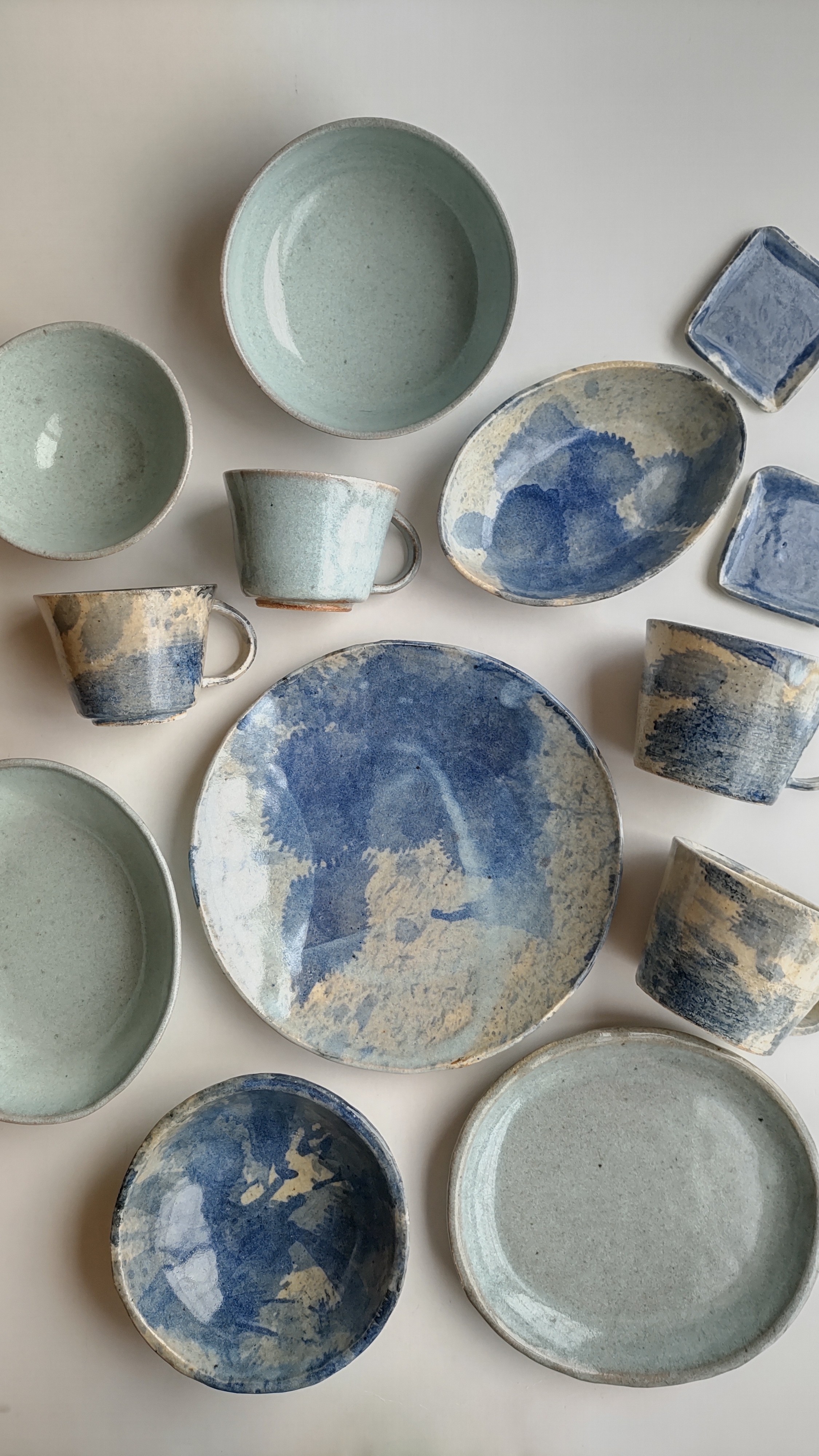 うつわを作っています。 土は主に佐賀県唐津土を用いて、釉薬は天然灰をベースのオリジナルの釉薬です。 カップや茶碗、皿、花入など暮らしに寄り添ううつわです。 土は不定形で、たくさんの表情があります。 いろんな形になる素材の魅力を表現できたらと定まらないかたちを求めて、手を動かしています。