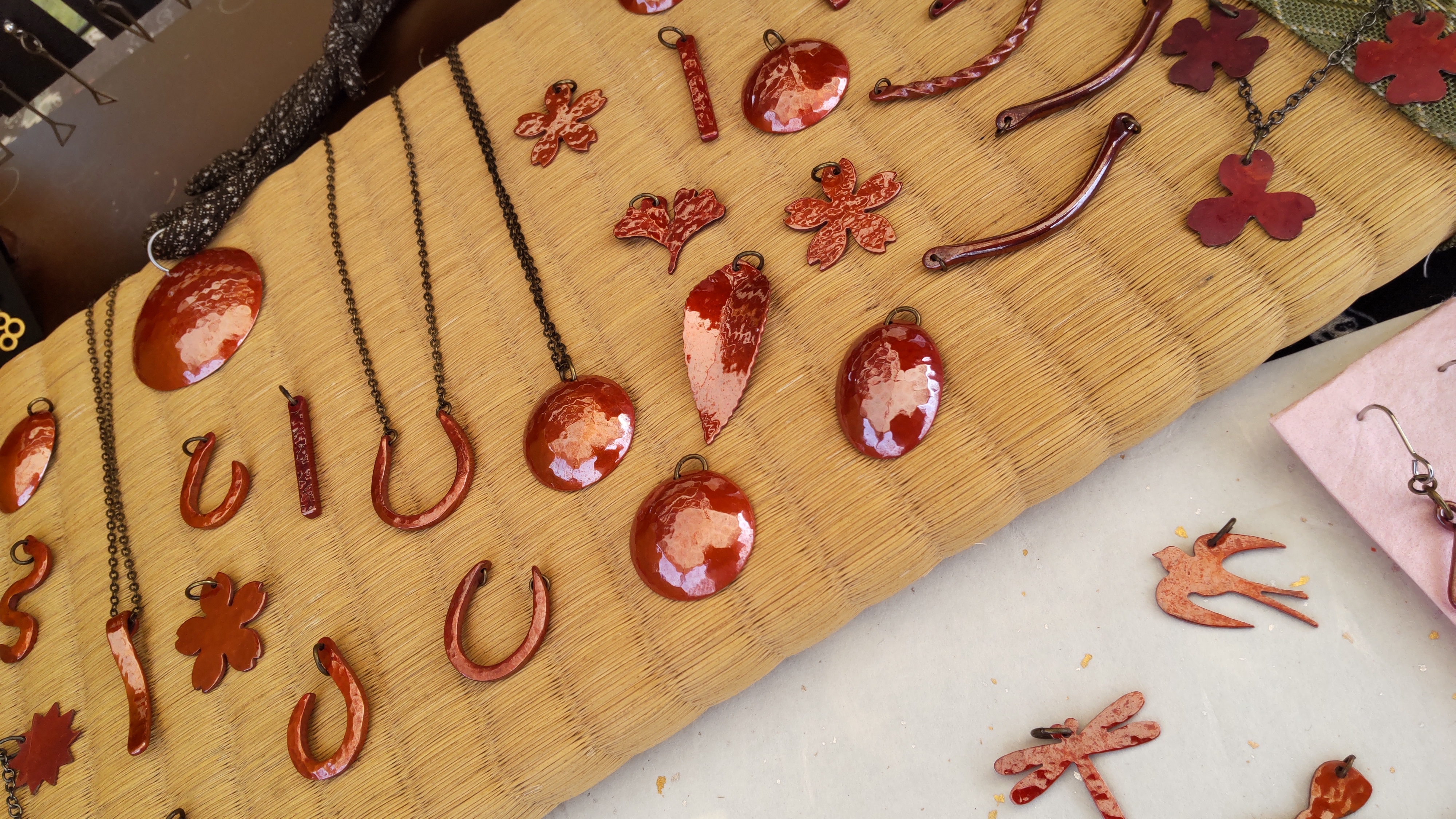 銀は象嵌七宝や寄せ金風細工、銅は緋銅や稲わら燻し、真鍮は糸のこの手技、鉄はブルースチール。塗装やコーティング剤を使用せず、伝統的技法を用いて単色の金属に彩を添えた作品を作っています。