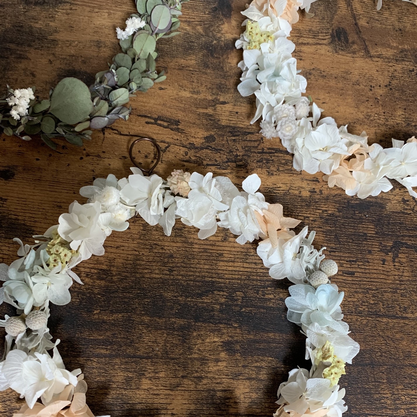 ドライフラワーのリース、スワッグなど