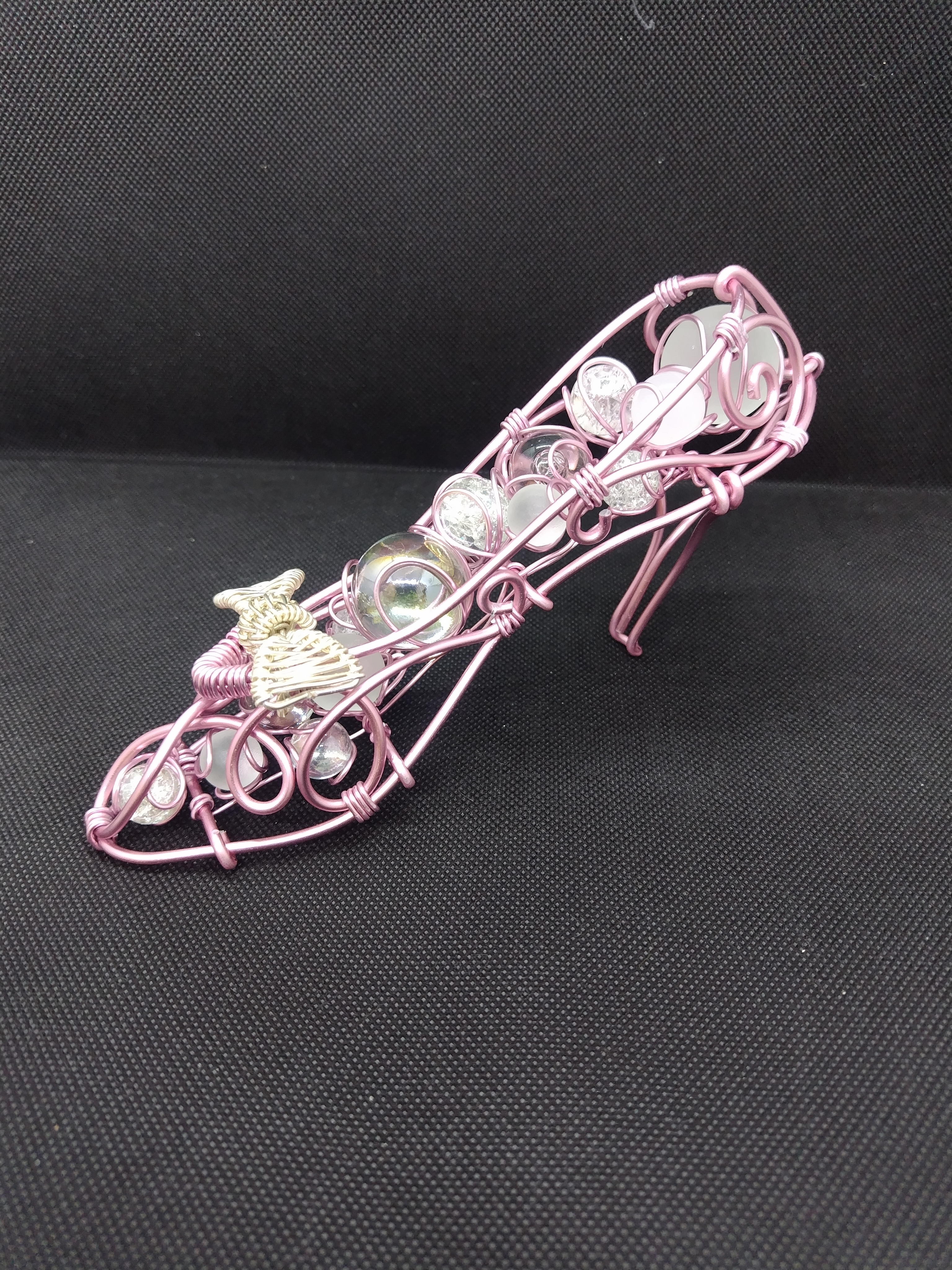 マーブルアートとはビー玉とワイヤーで作ったインテリア小物とアクセサリーです。 色々な種類のビー玉がキラキラ輝きとても綺麗です。