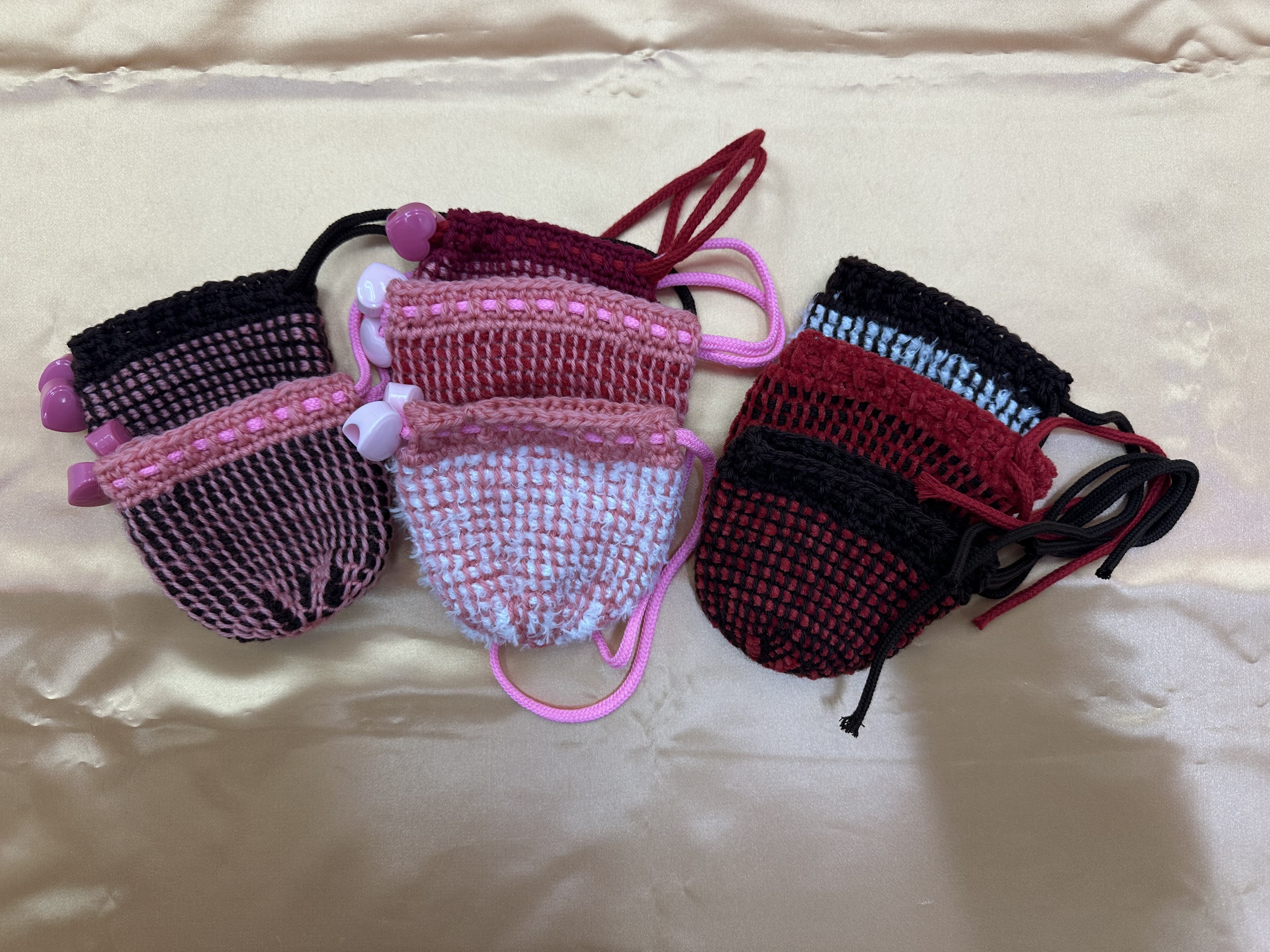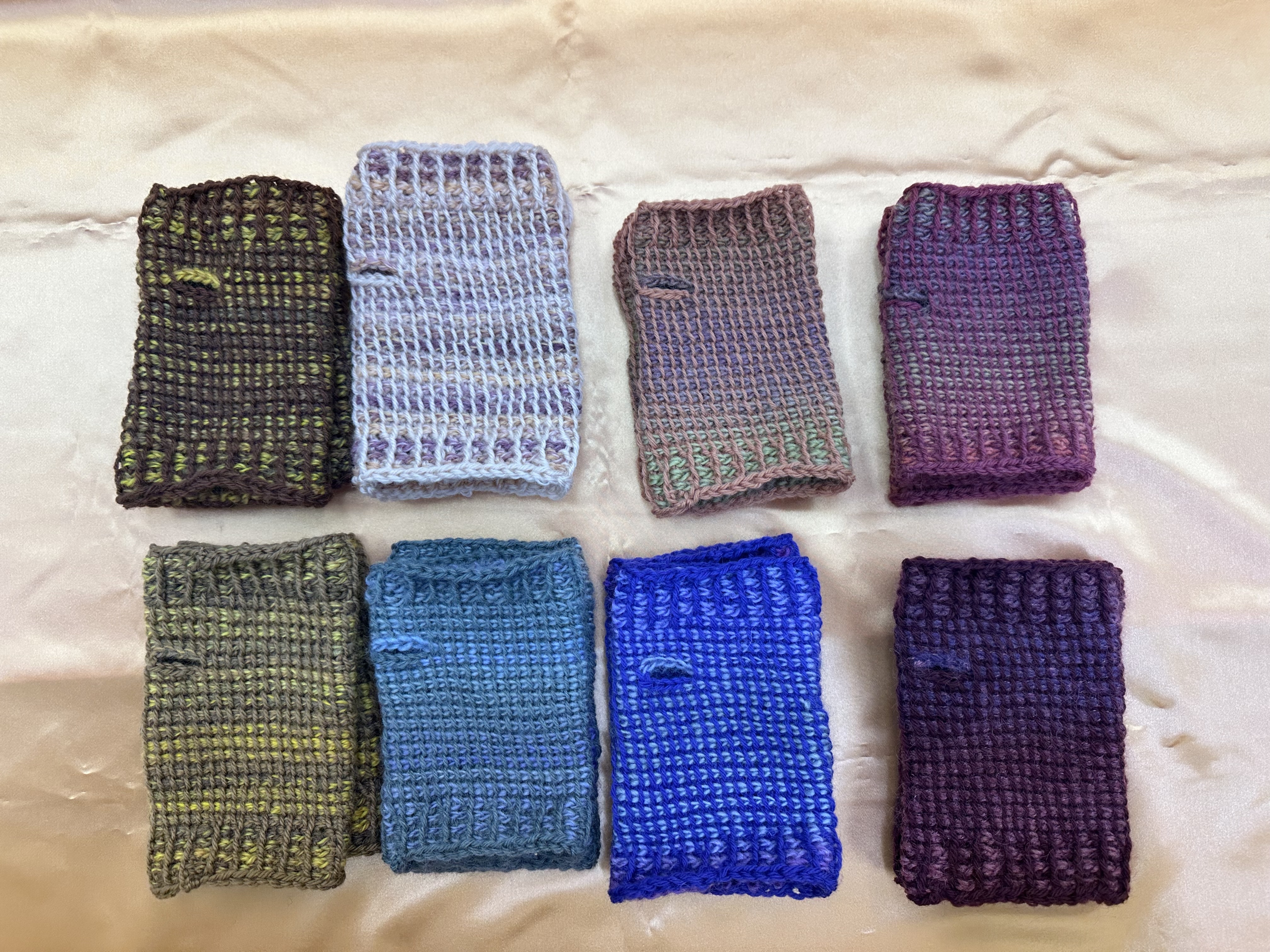 編み物の技法の中ではあまり知られていない技法ですが、素材や配色によって様々な表現ができます。 丈夫で密度が濃く、織物に似ているのが特徴です。