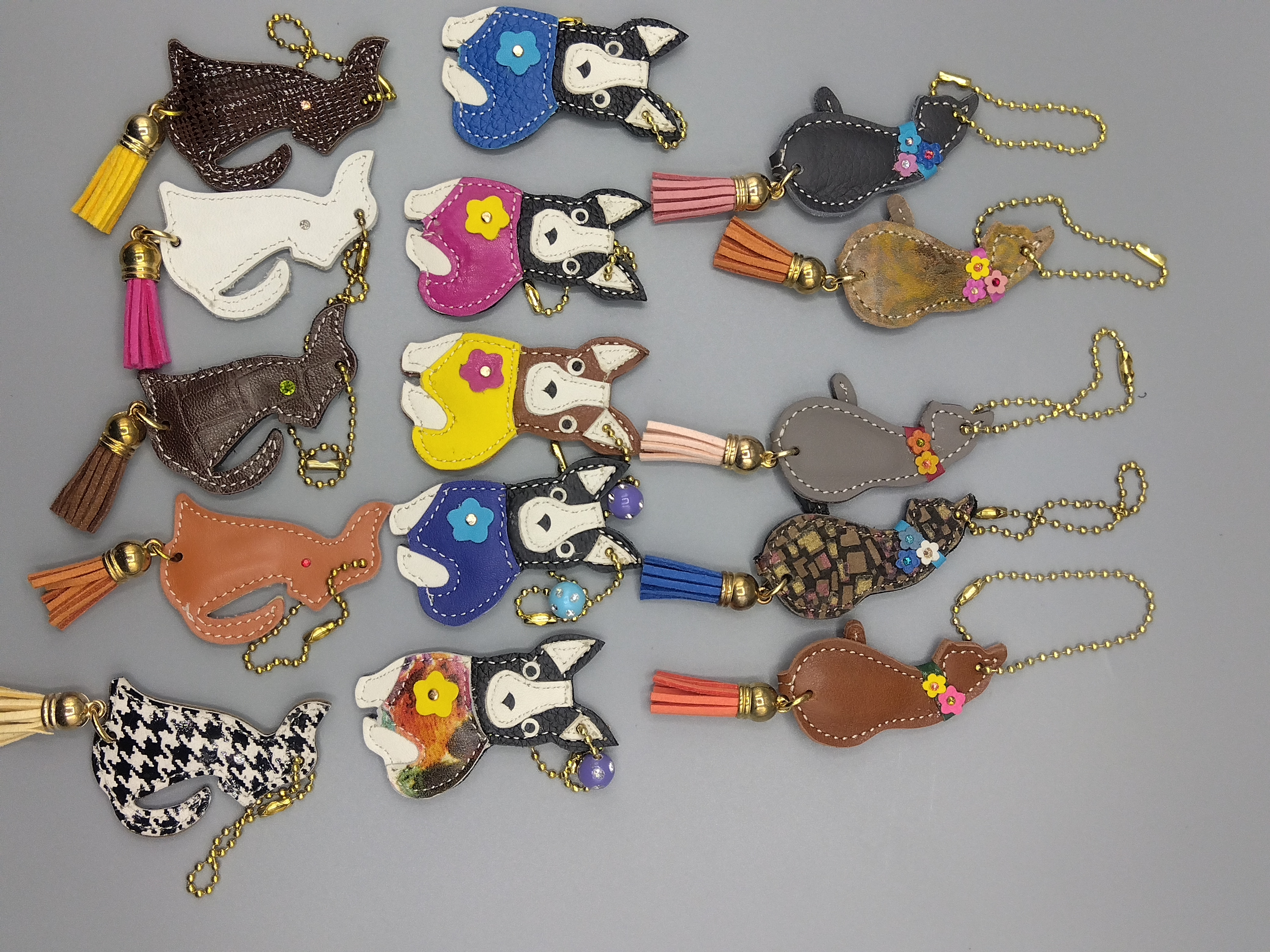 革でバックや ローケツ染めで染めた財布 毛糸で編んだ編みぐるみ 巾着なども作っています