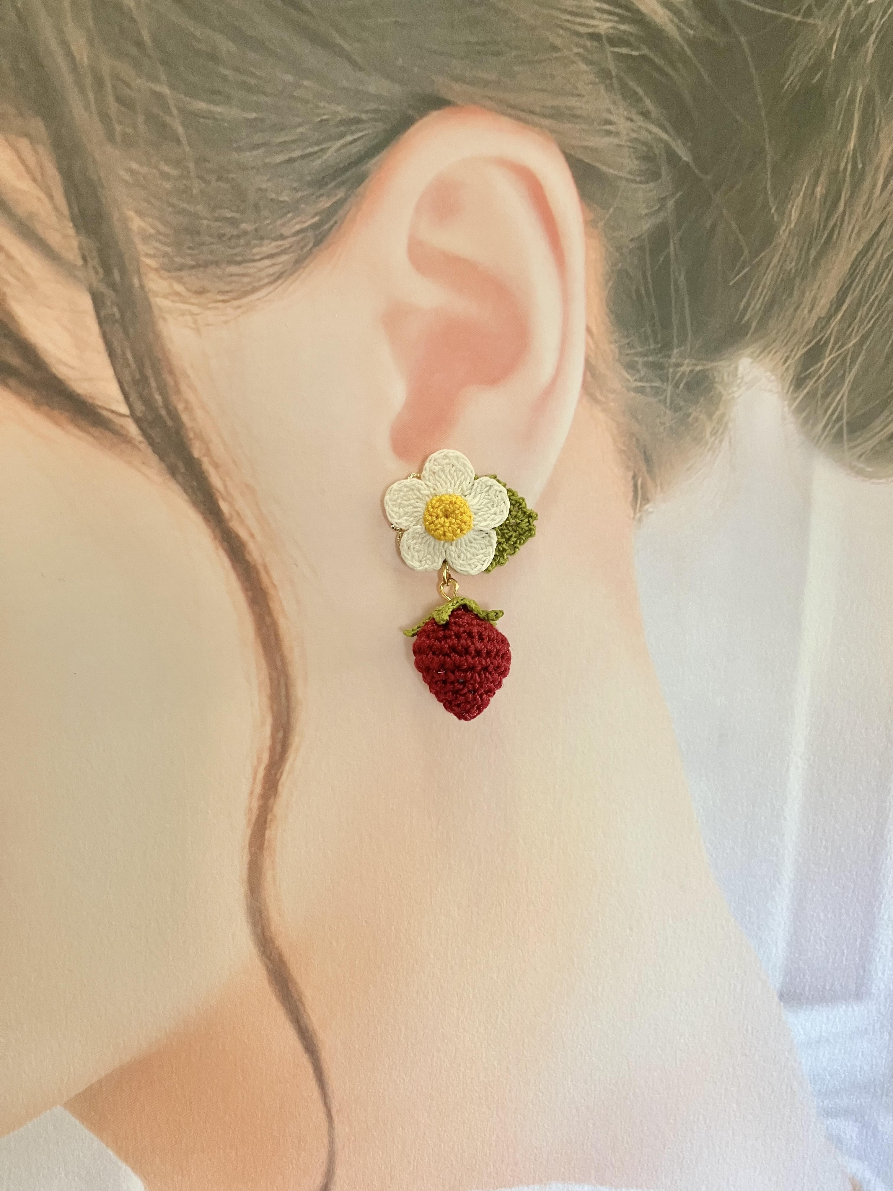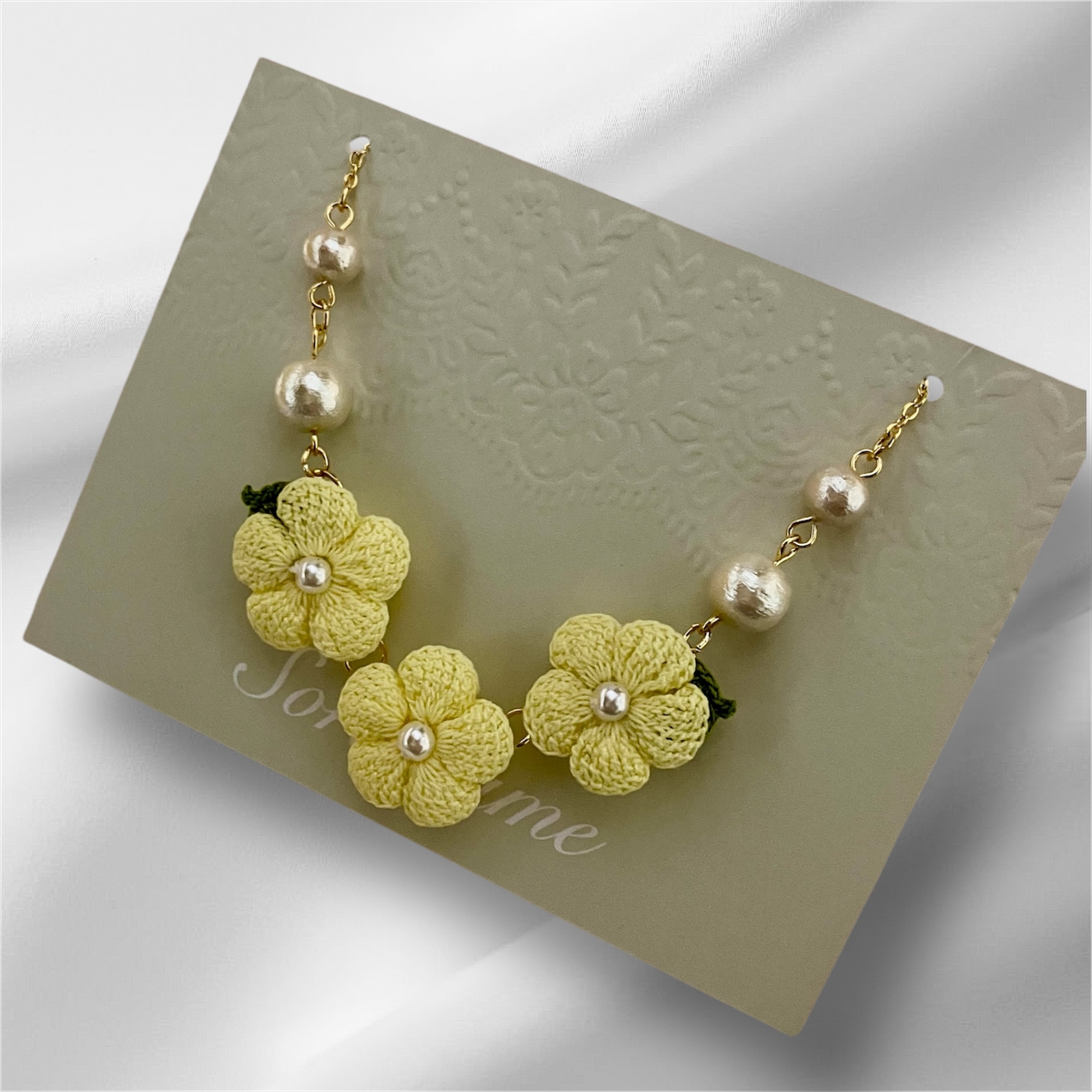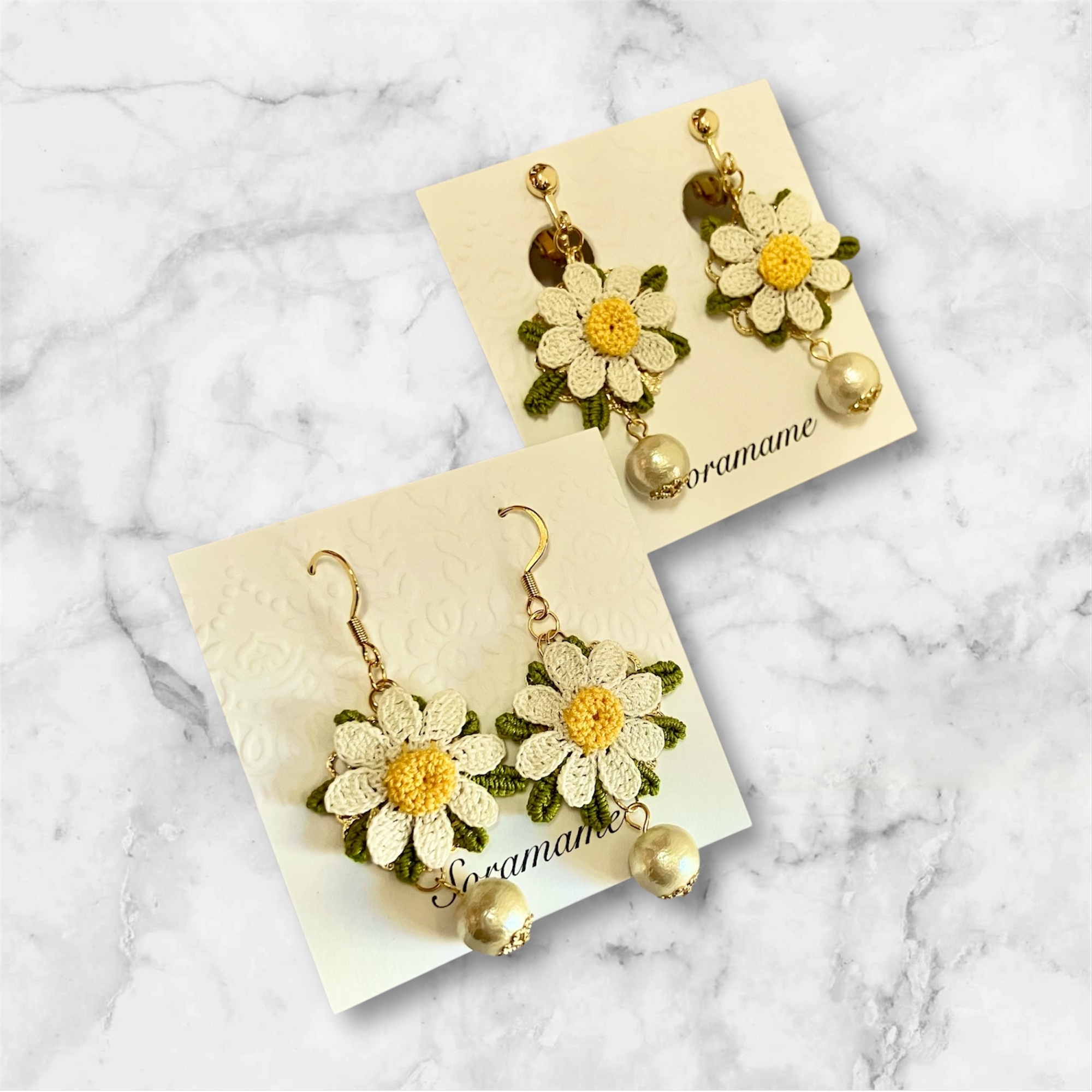 極細のレース糸で編んだお花のアクセサリー