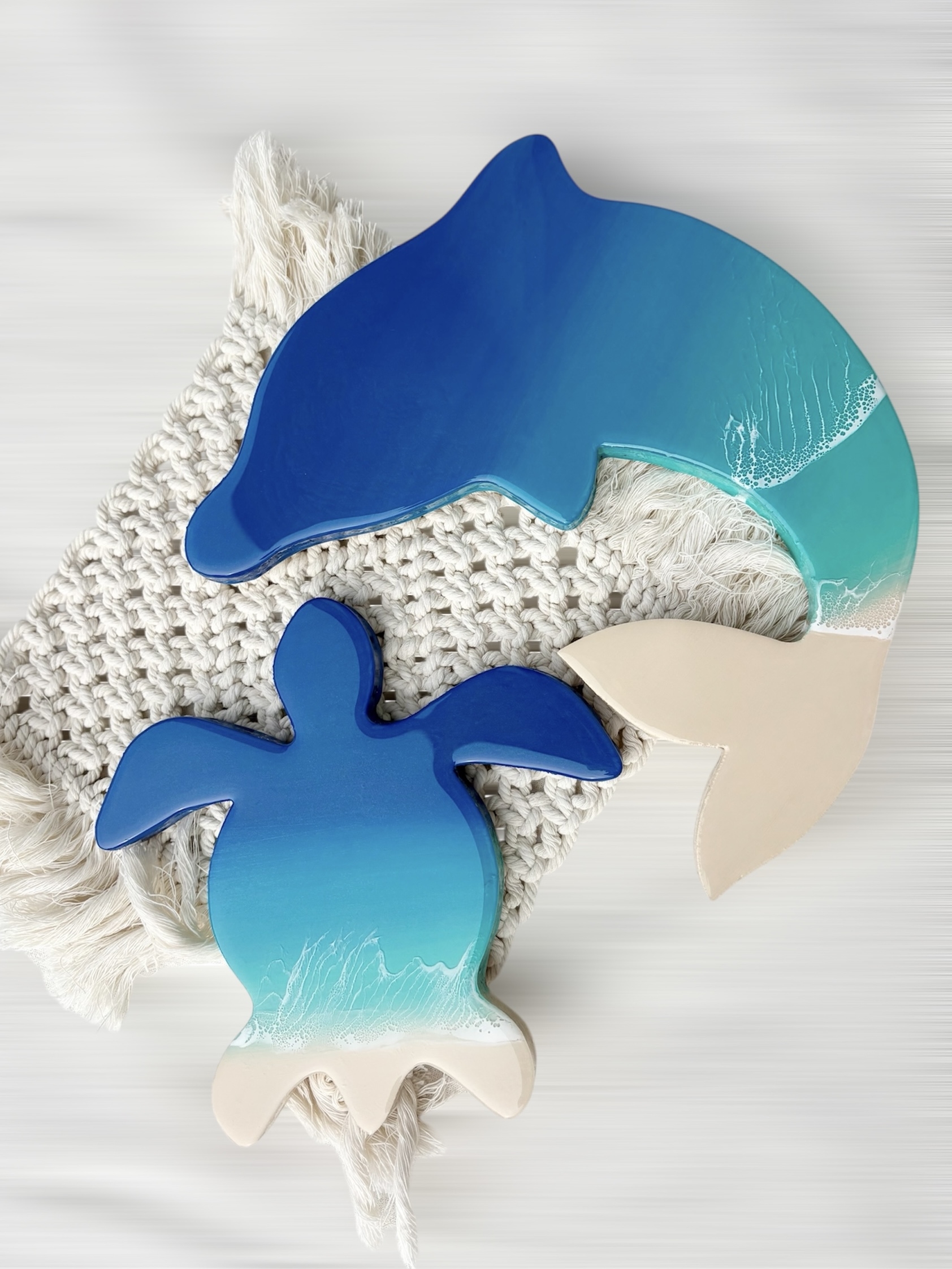 透明感あふれるエポキシレジンを使い、 本物の海を閉じ込めたようなアート作品を制作しています。 インテリアとして飾れるアートパネルや、波の模様をあしらったコースター・トレイ・アクセサリースタンドなど、日常に海の癒しを添えるアイテムをご用意しております。 インテリアや雑貨として日常に