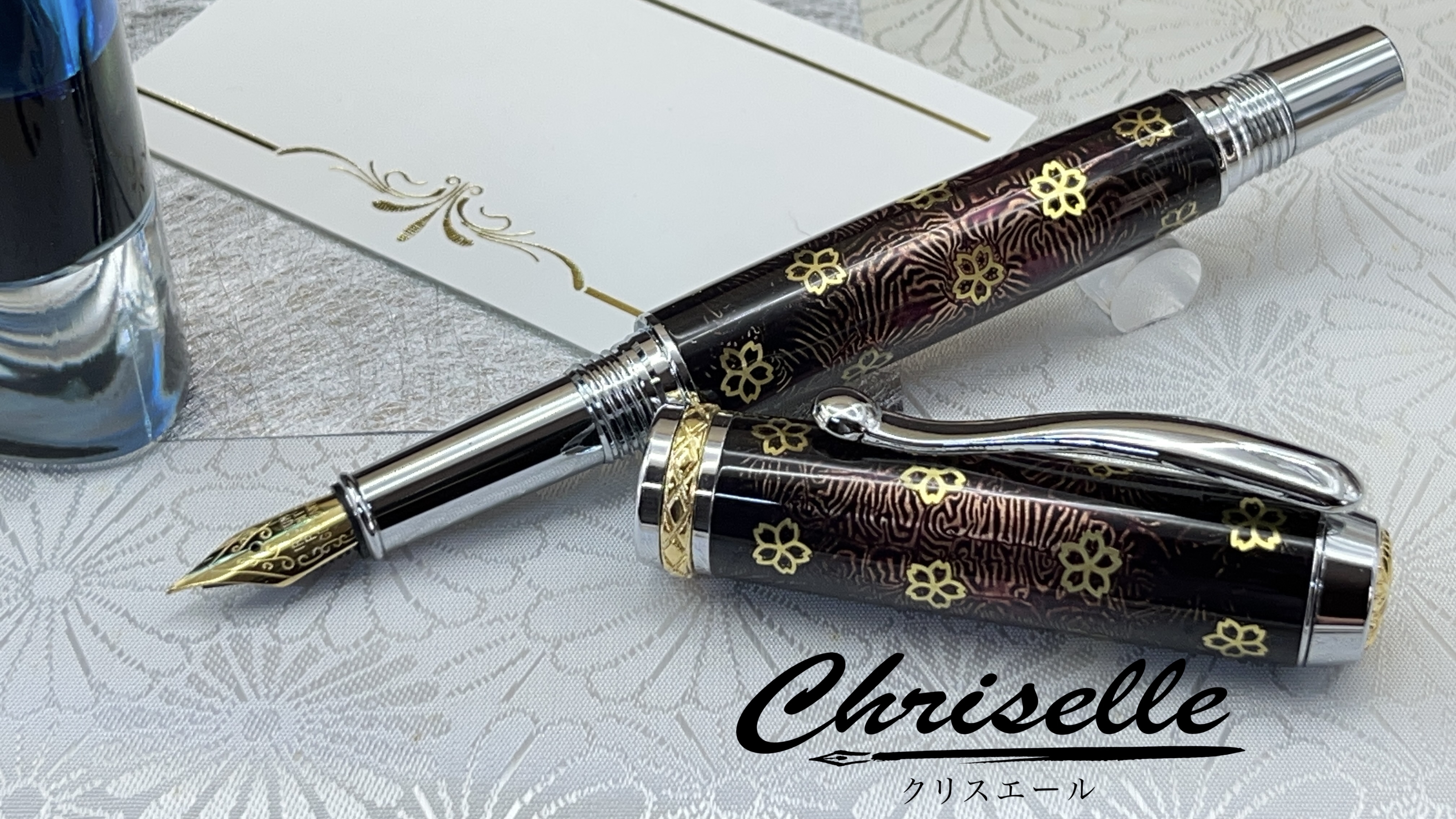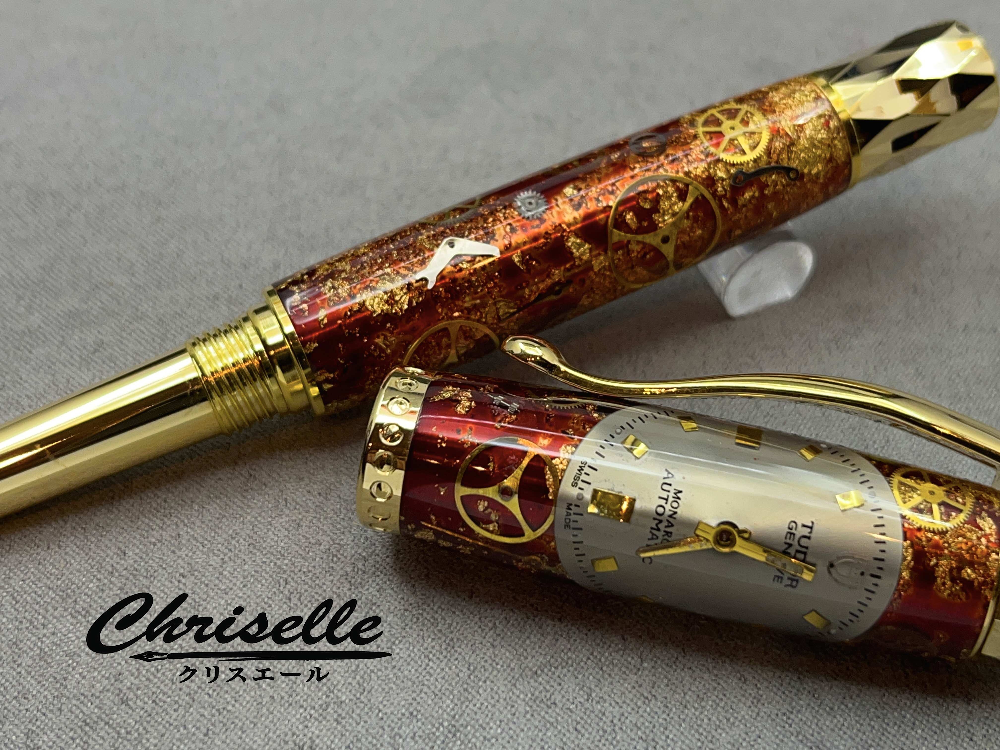 漆、真珠貝、鮑貝、鰐革、水牛、腕時計、楓、樹脂、珈琲豆、鳥羽、鰐顎骨、鮫歯、基盤等々ユニーク素材を巻きつけたり、透明樹脂で固めオリジナルブロックを創り、旋盤してクリップやリングなど金属部を取り付け、万年筆とボールペンを創っています。モットーは『世界に1本』なので、ブロックから創っています。確かな技術で奇想天外で美しいペンを創るのは、職人として最高の喜びであり使命だと思っています。
