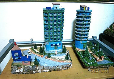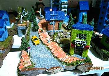 ・材木、流木を一部着色していろいろなオブジェ(ロッククライミング、サッカー、釣り、ハイキング等)を作成。・軽石で作成した鉢に多肉植物を寄せ植え。