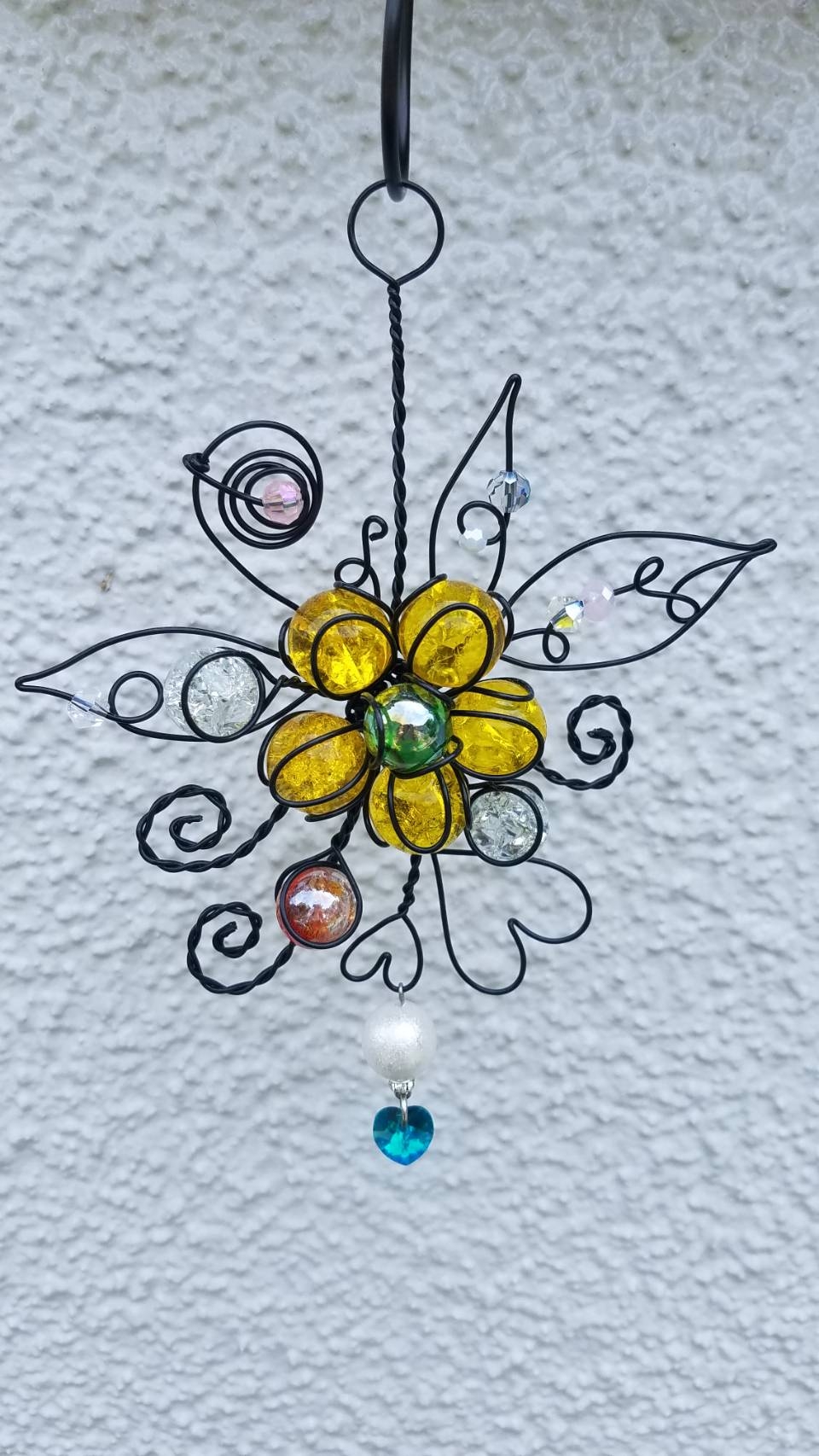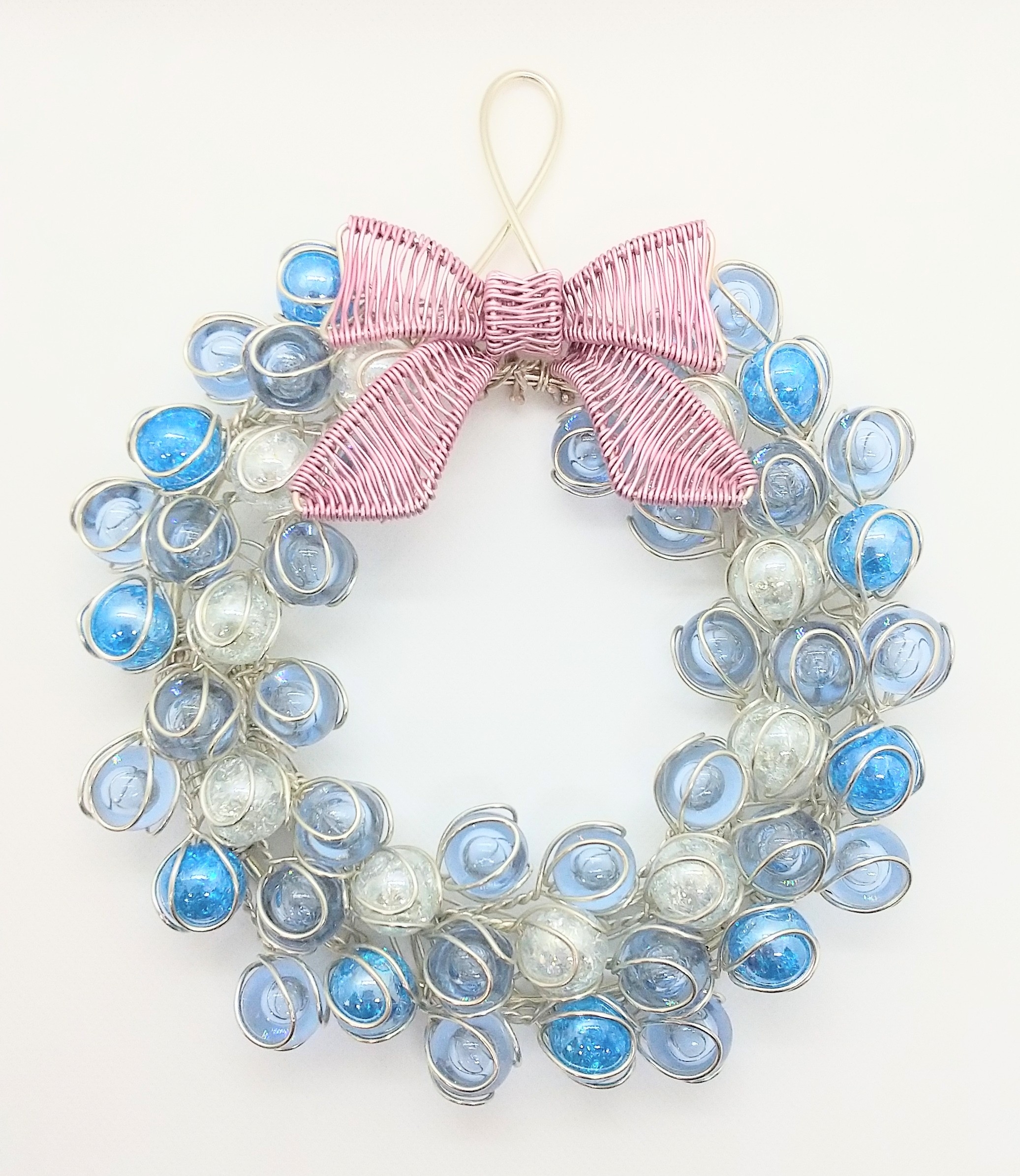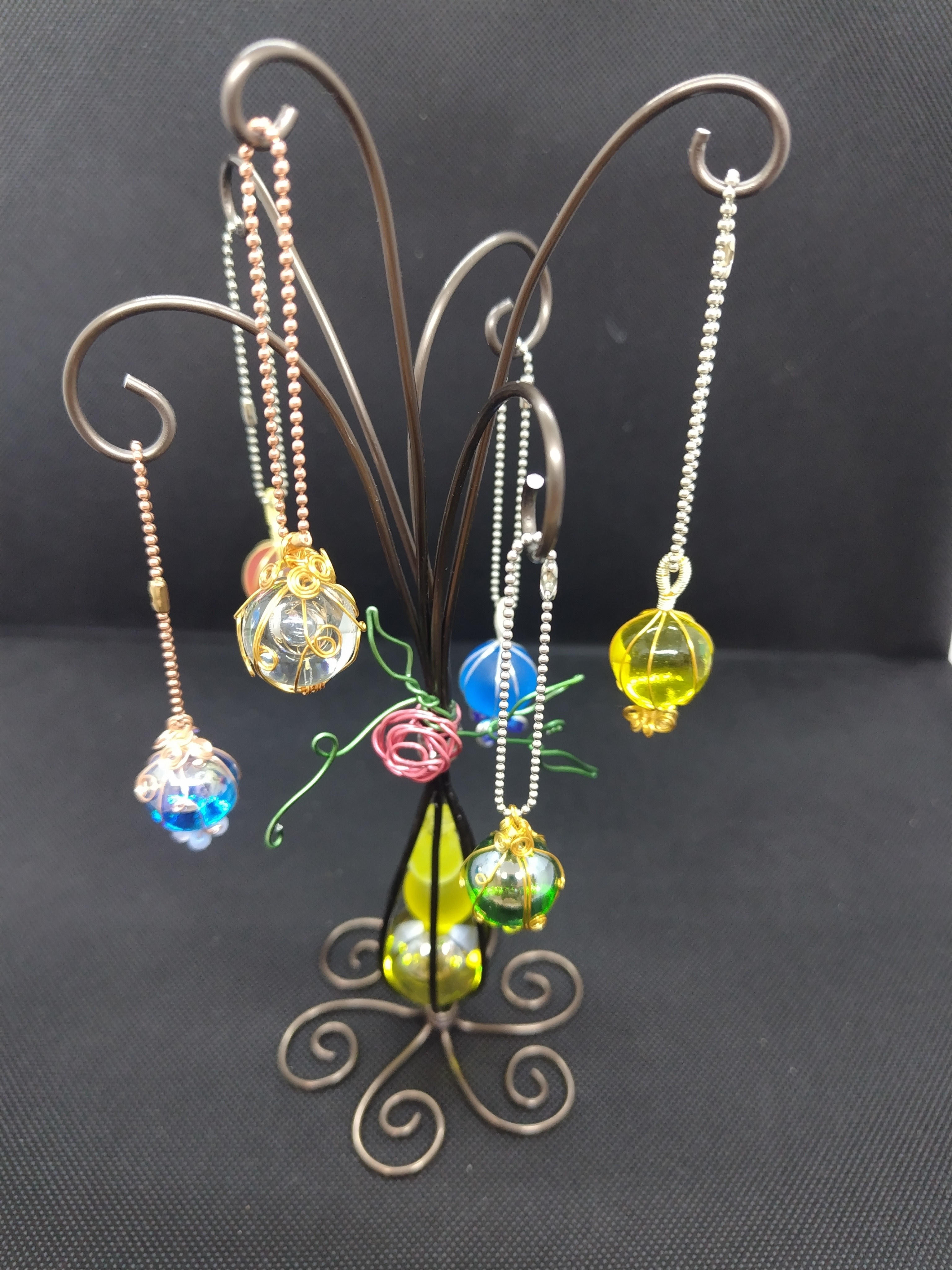 ビー玉とワイヤーで作ったインテリア小物やアクセサリーです。