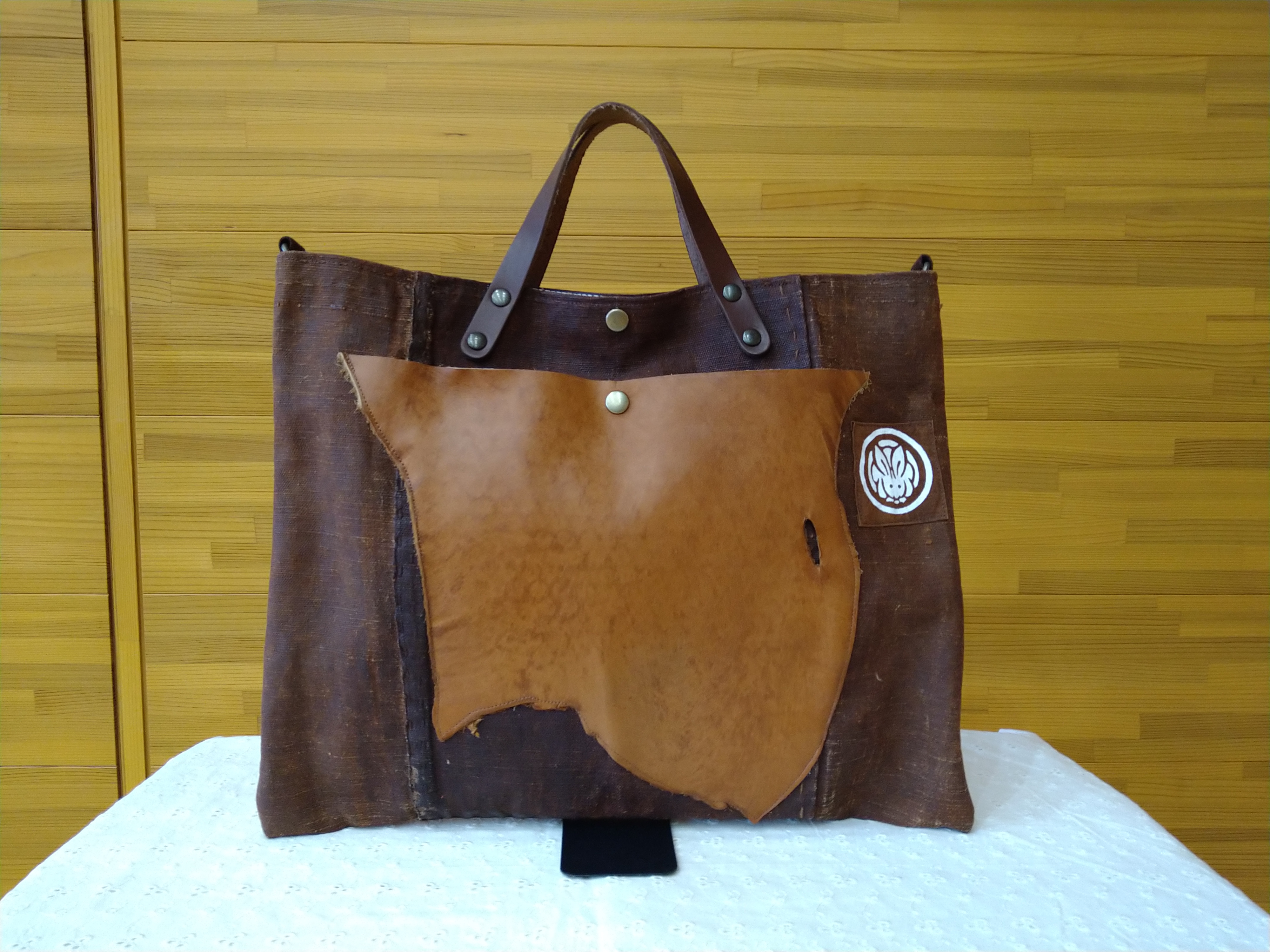 柿渋染酒袋素材のバッグを制作販売致します。 酒袋とは日本酒製造の過程で使う絞り袋です。現在では使われてなく大変希少な素材です。使う程に味わいが出る世界に一つだけのバッグをお楽しみ下さい。