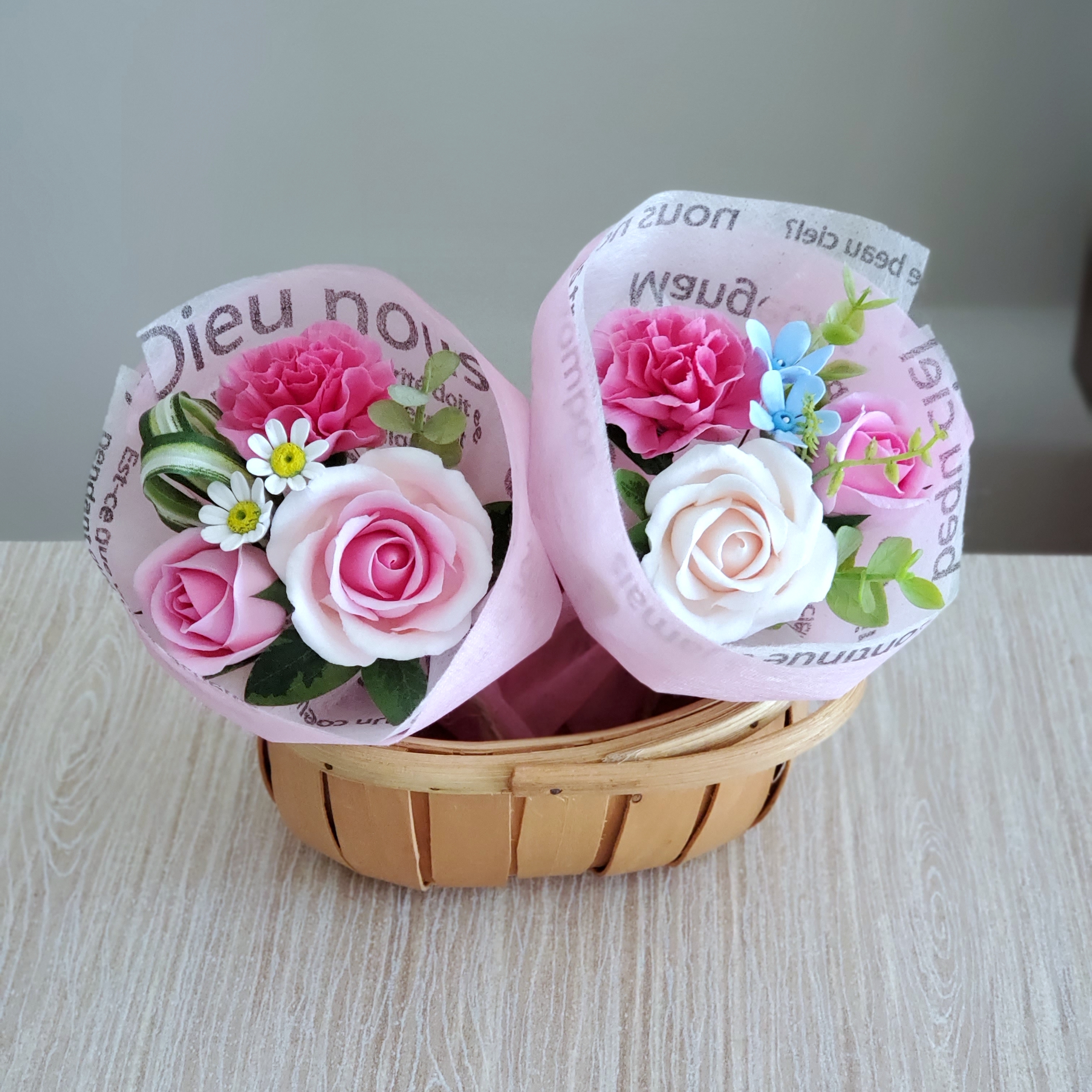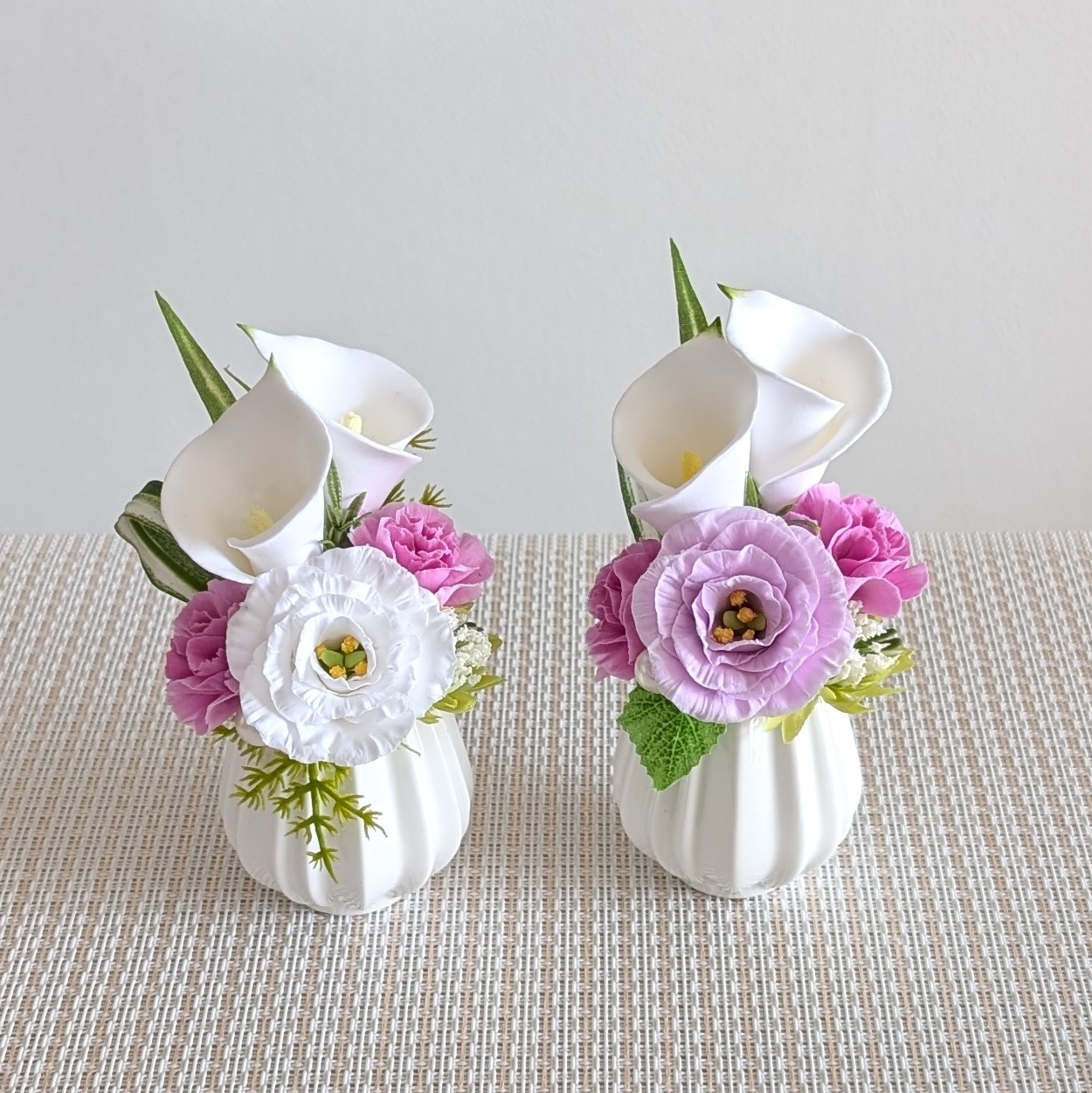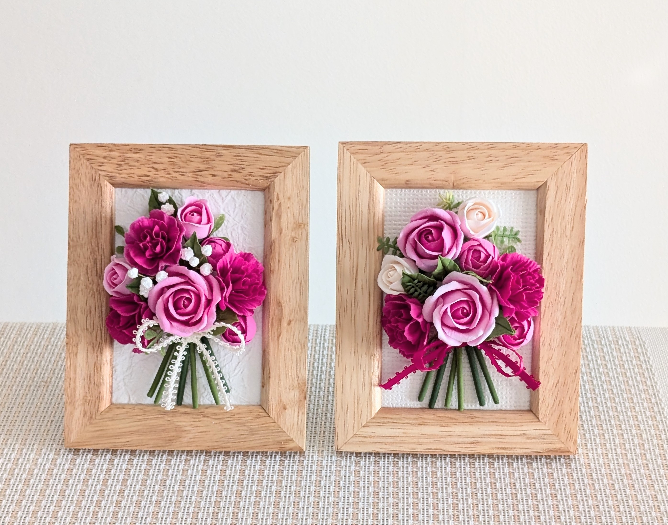 上質で特殊な粘土で花びら1枚1枚からお花を作ってます。完成したお花はとっても軽くて丈夫です。