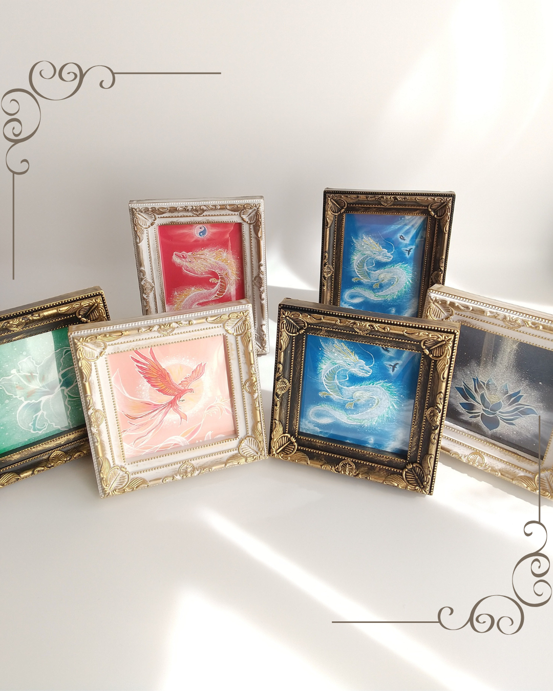 カラーペンとオイルパステルで描いた幻想的な絵です。ポスターやポストカードなどを販売します。
