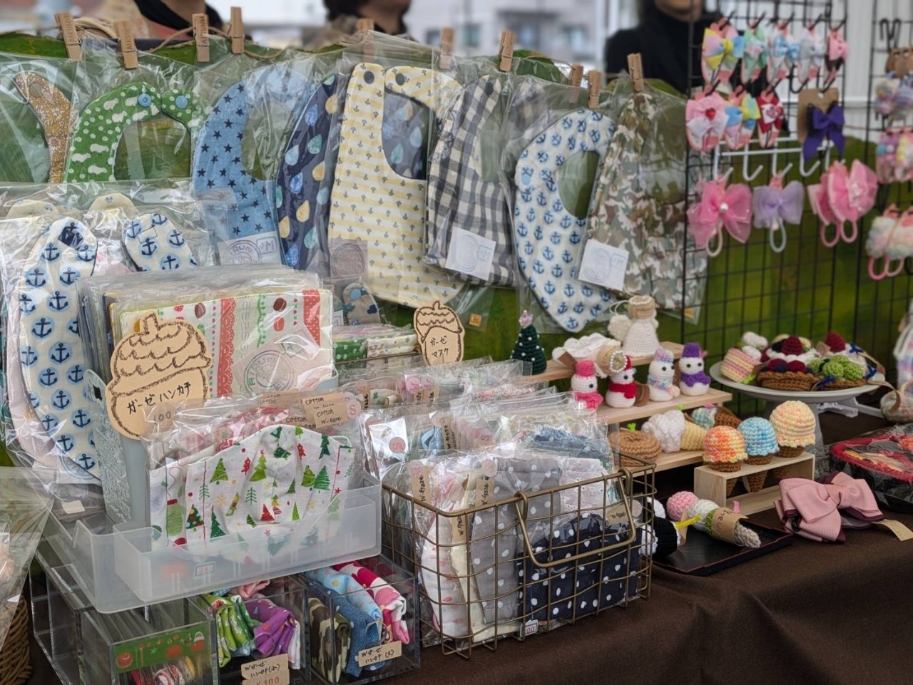 子供達とママの笑顔をたくさん見たいママ4名でかわいいアイテムをたくさん作りました。いつものくらしにかわいいと好きをプラスして楽しくなれるように、スタイなどのガーゼアイテム、親子でおめかしにアクセサリー、リボン、ニットバッグ、おままごとで大活躍の編みぐるみフードやぬいぐるみの衣装など…他にも毎日使えるアイテムが盛りだくさん。 かわいいものがたくさんつまった「かわいいものジャングル」、是非のぞきに来てください。