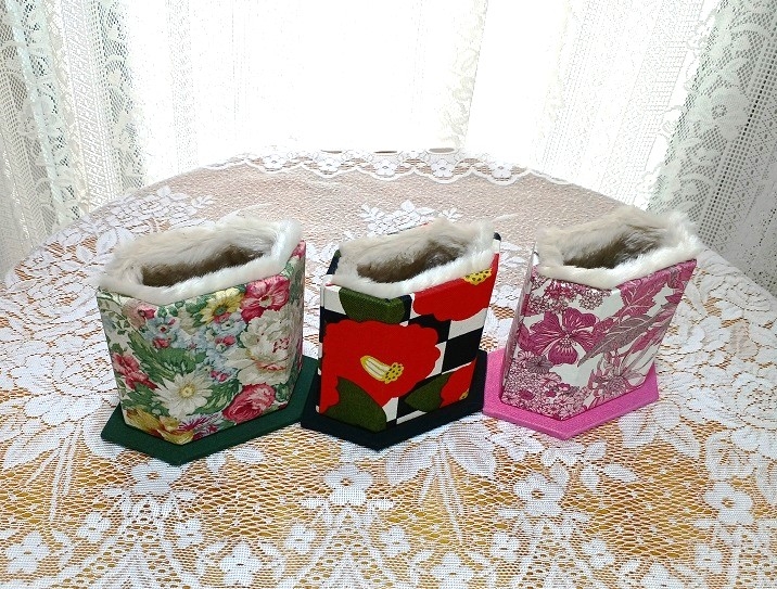 【材料】・カルトン(1mm、2mmの厚紙) ・布(綿素材、キルト綿) ・接着剤、両面テープ等