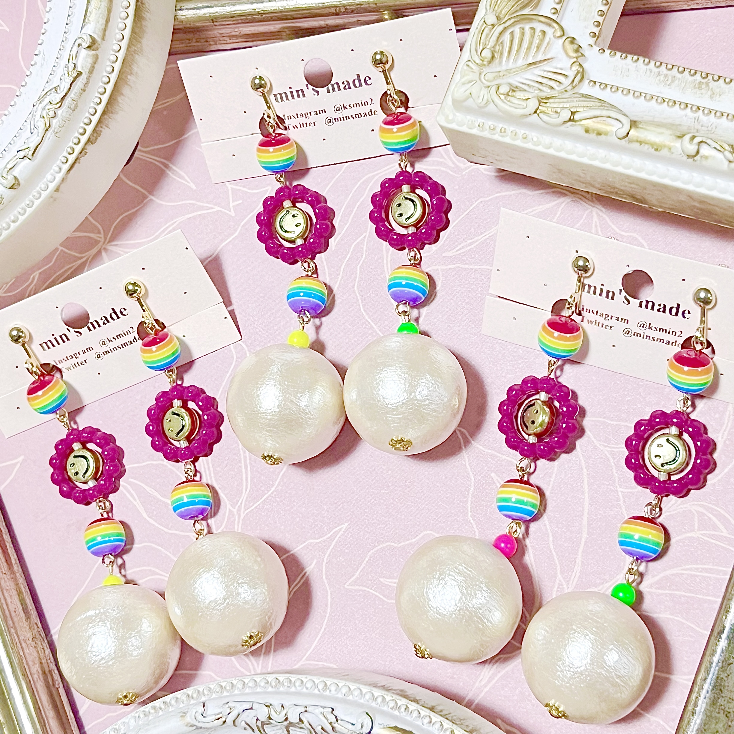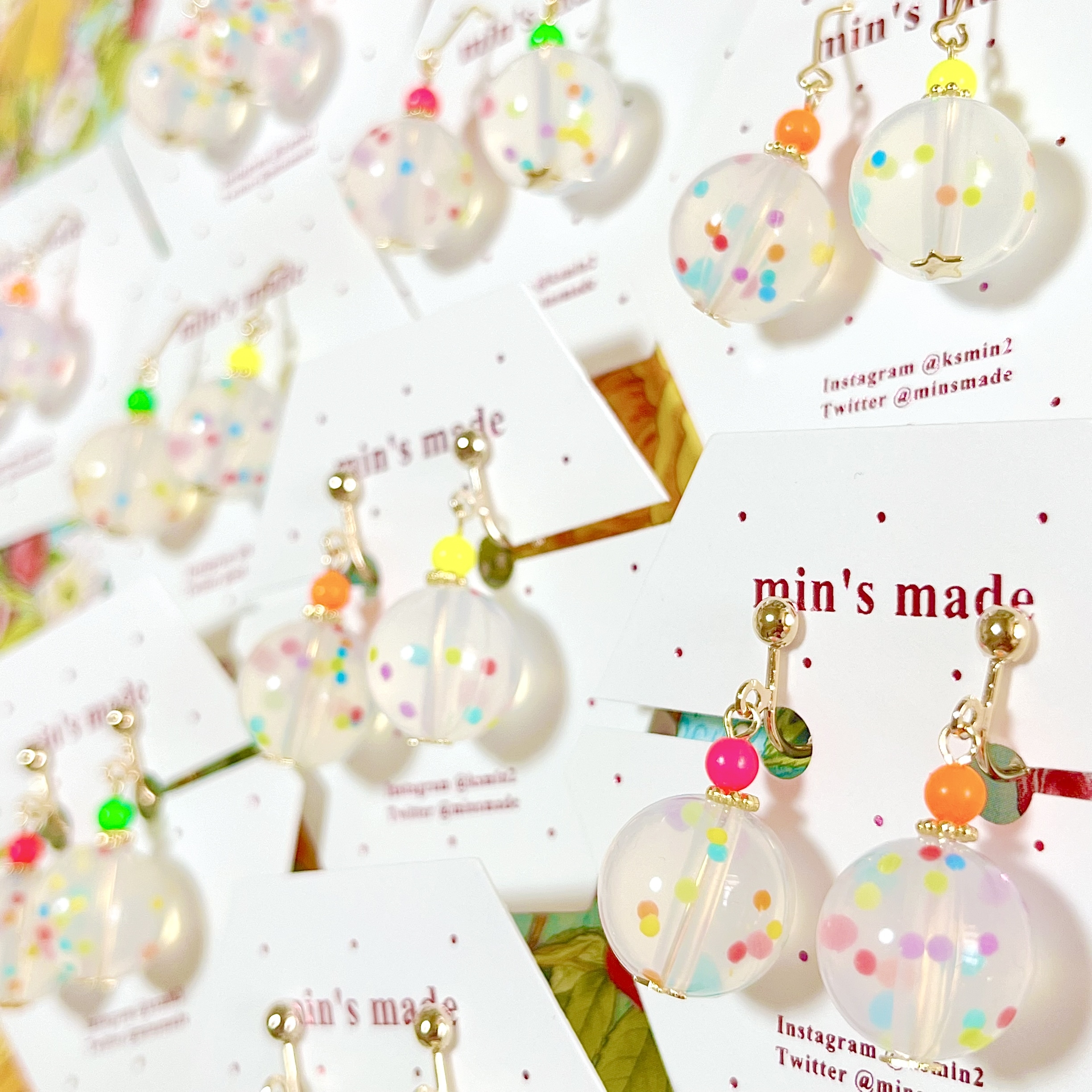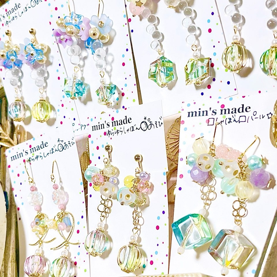 カラフルPOPな世界観の中で宝探しを!をコンセプトにアクセサリーを製作しているmin’s madeです♪ぜひ宝探しを楽しみにご来店下さい^^