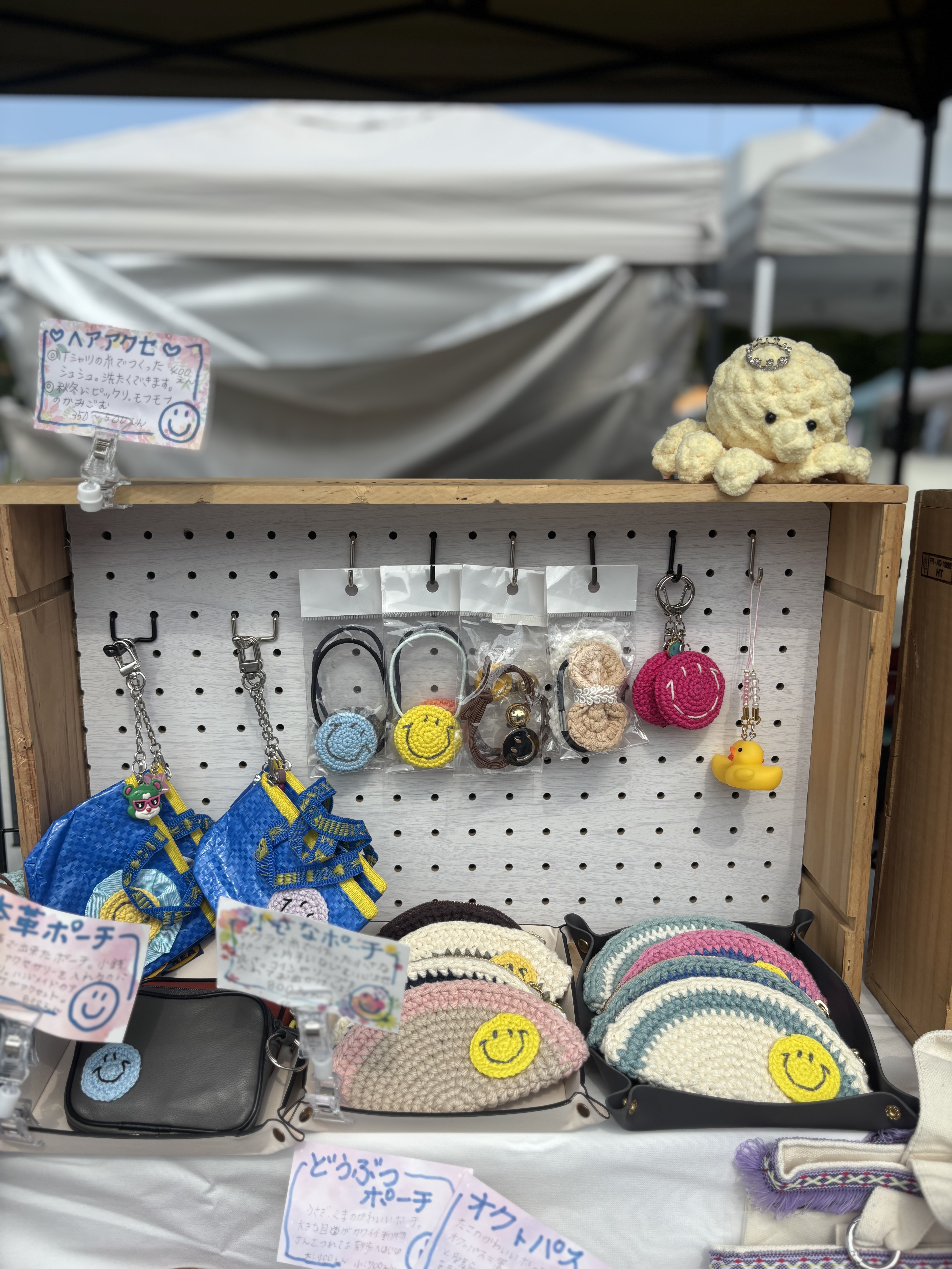 スマイルをトレードマークとした編み物雑貨やTシャツヤーンで小物、携帯ストラップなどを制作しています。