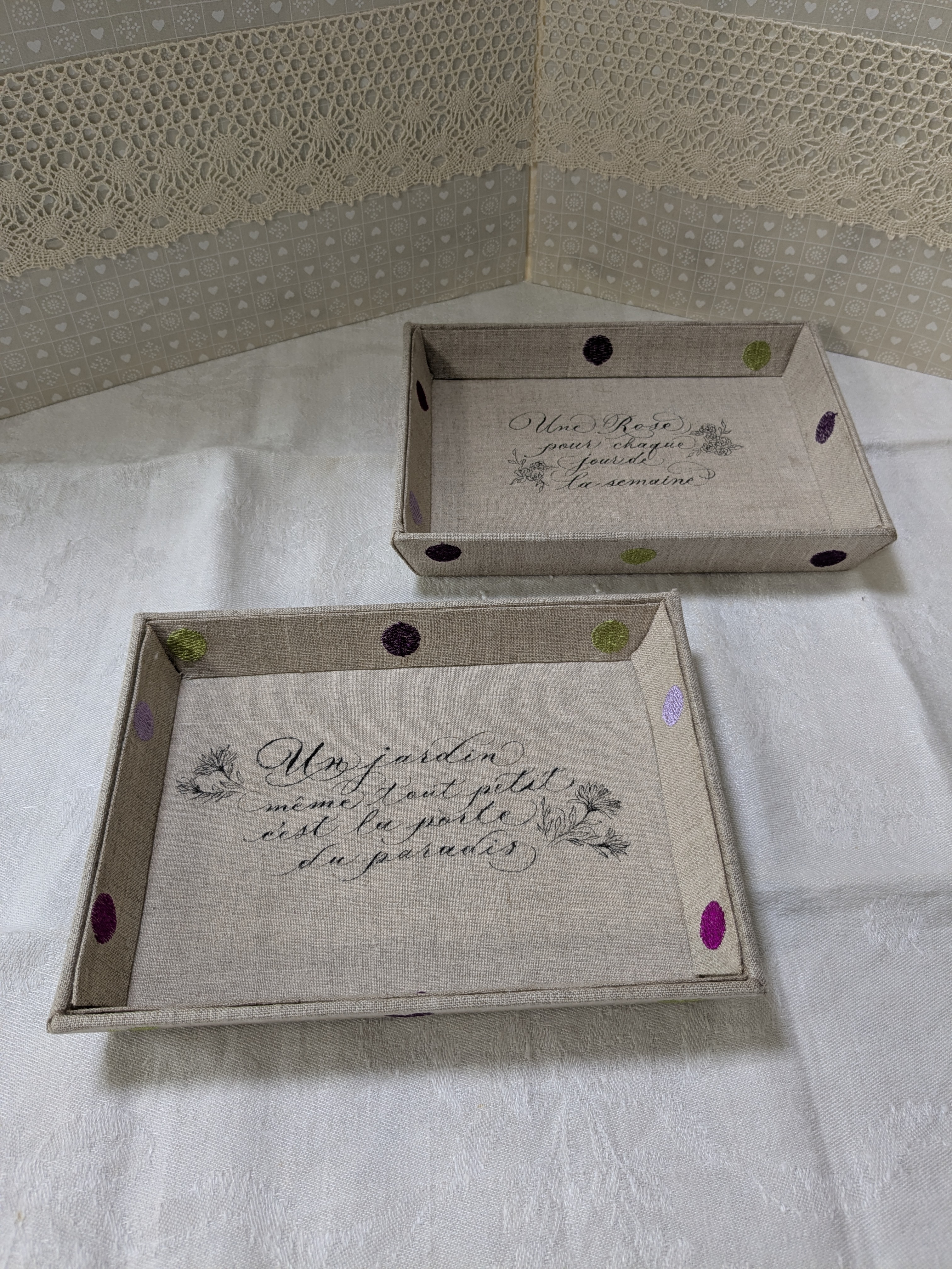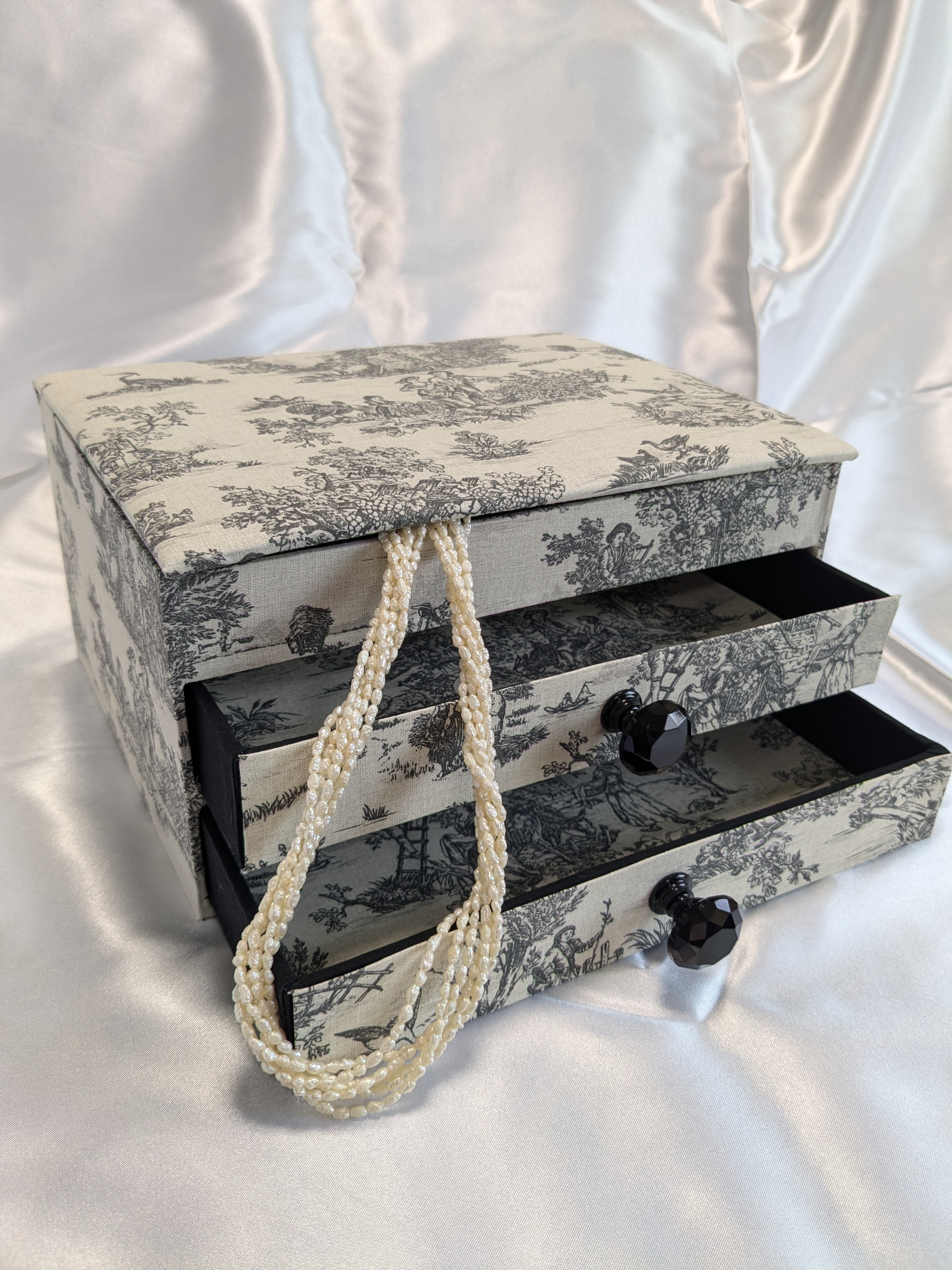 カルトナージュは厚紙をカットし組み立て布をはるフランス伝統工芸。心をこめて製作しています