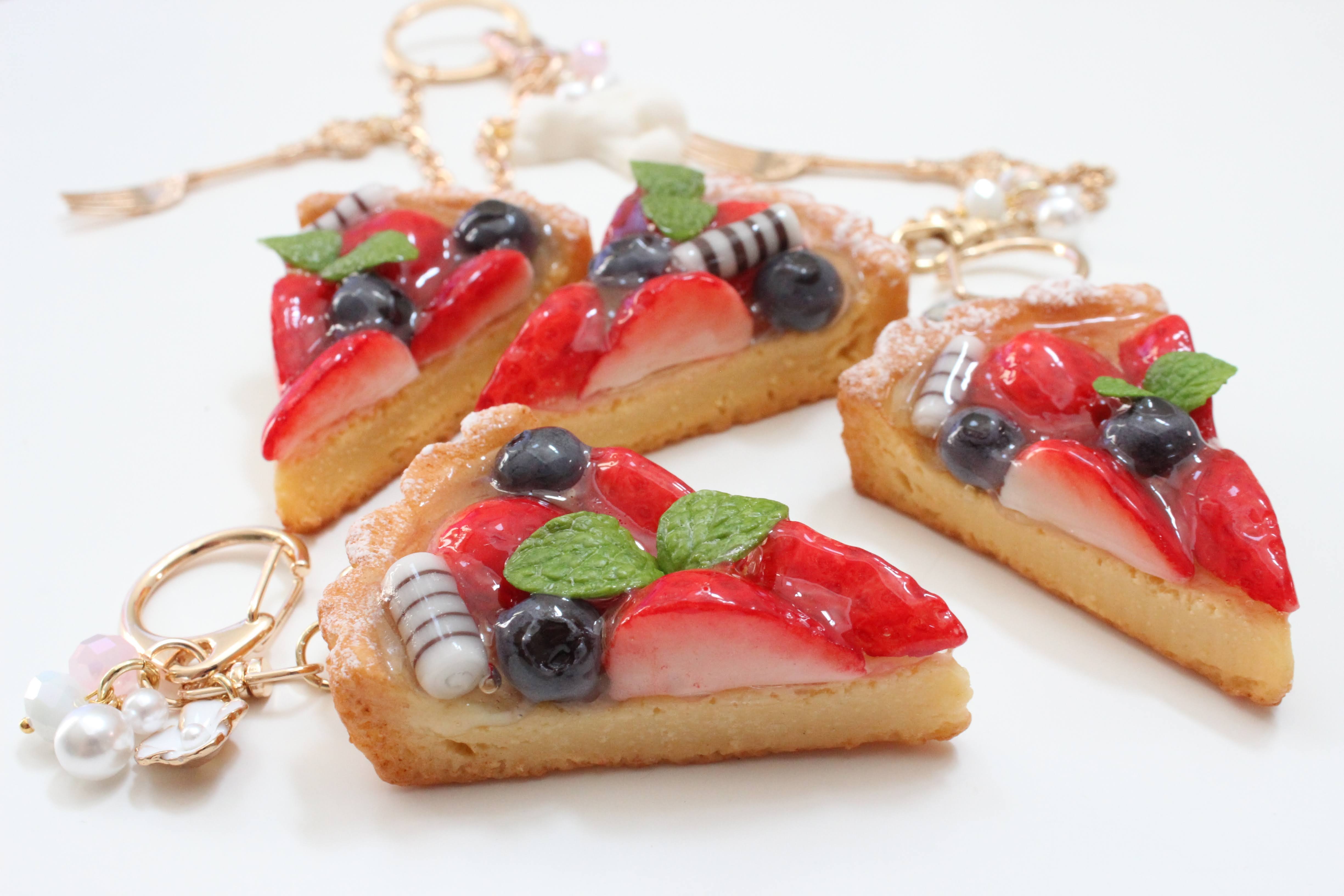 粘土で作った本物そっくりの可愛いスイーツ雑貨!フルーツやお菓子をリアルに制作し、キーホルダーやバッグチャーム、ヘアアクセサリーなどに仕上げました。子どもも大人も幅広く使えるアイテムを、選ぶのが大変なほど種類豊富に取り揃えております。独学で作り続けて14年。試行錯誤して作り上げた世界にひとつだけの食べられないスイーツを是非お楽しみ下さい。