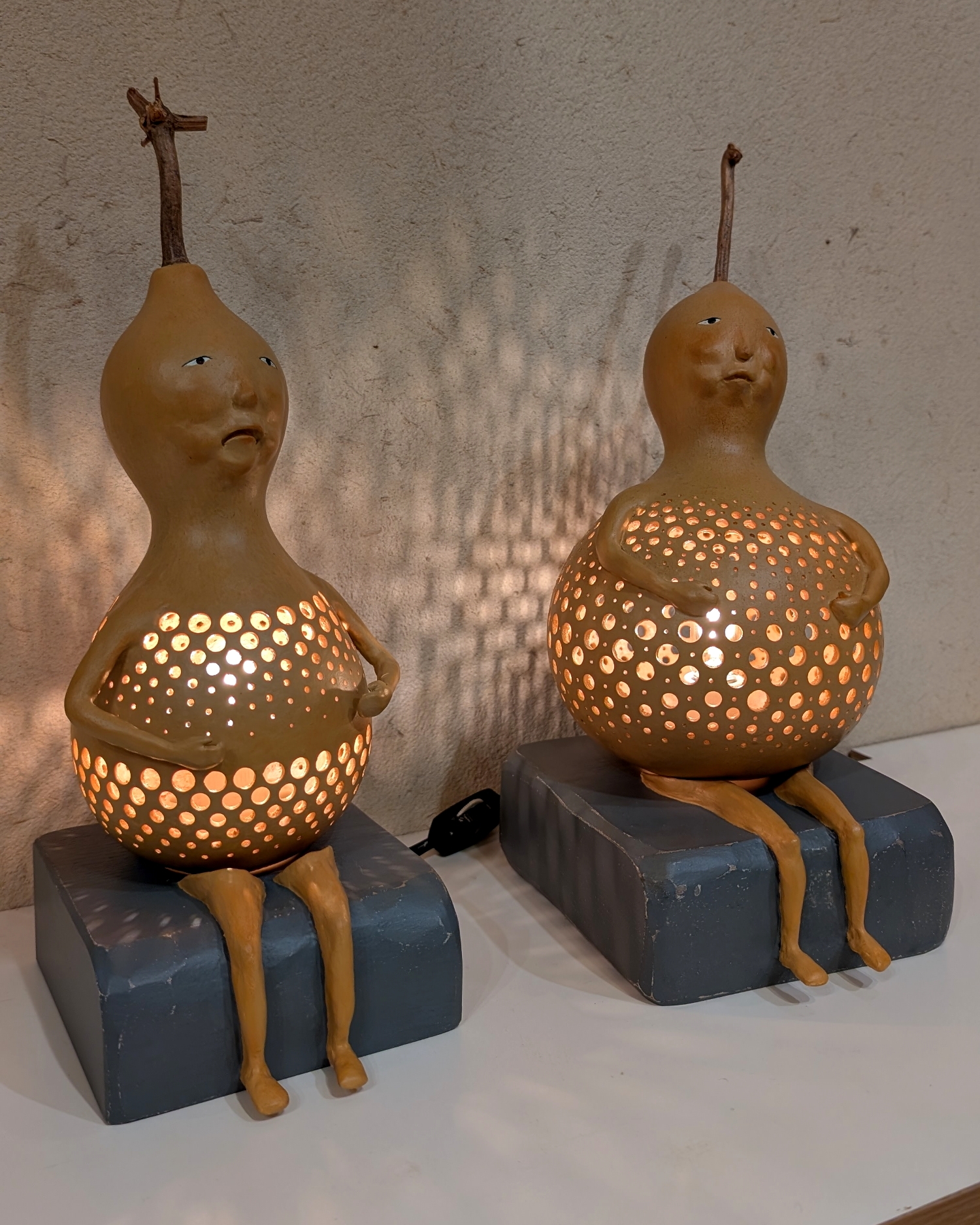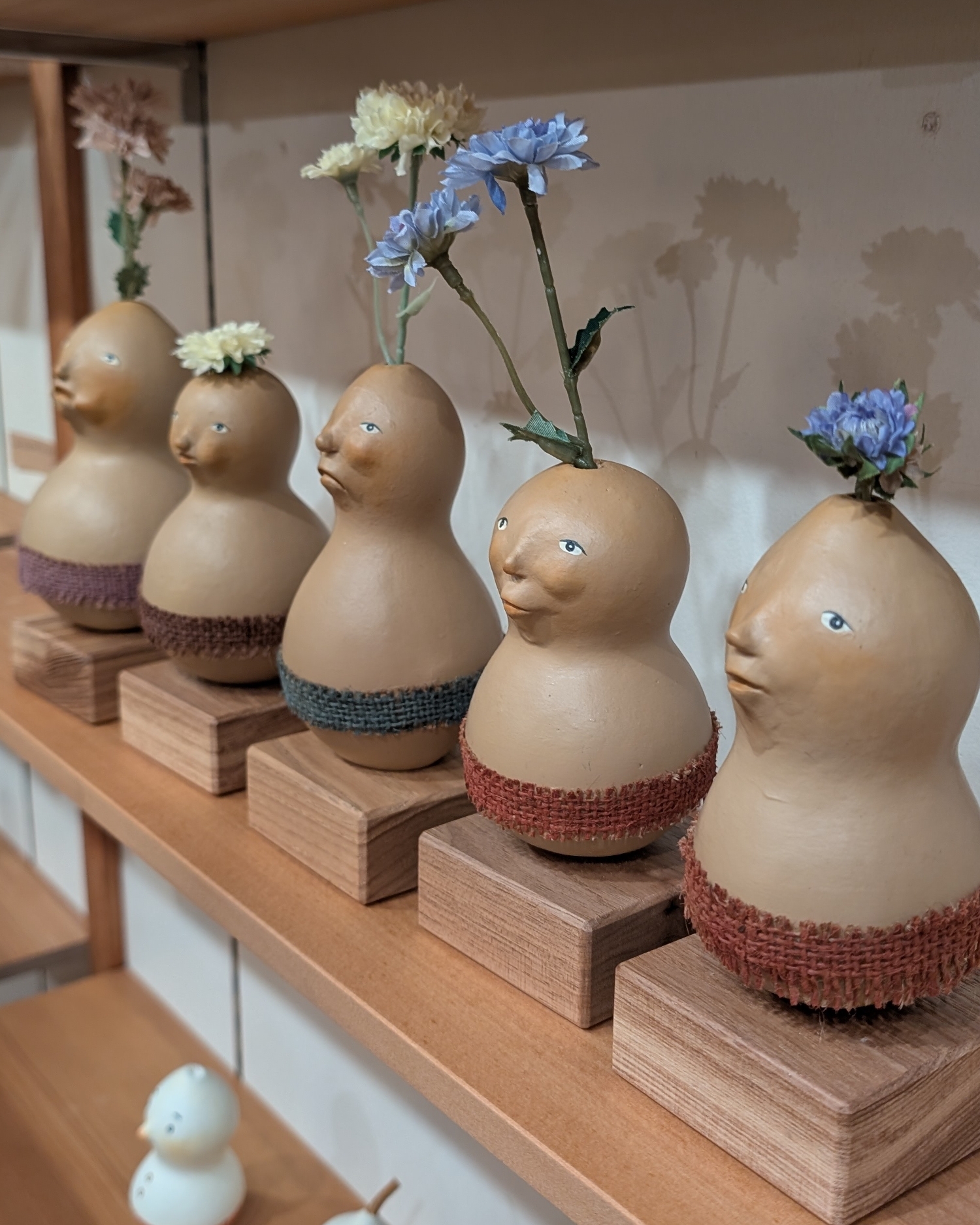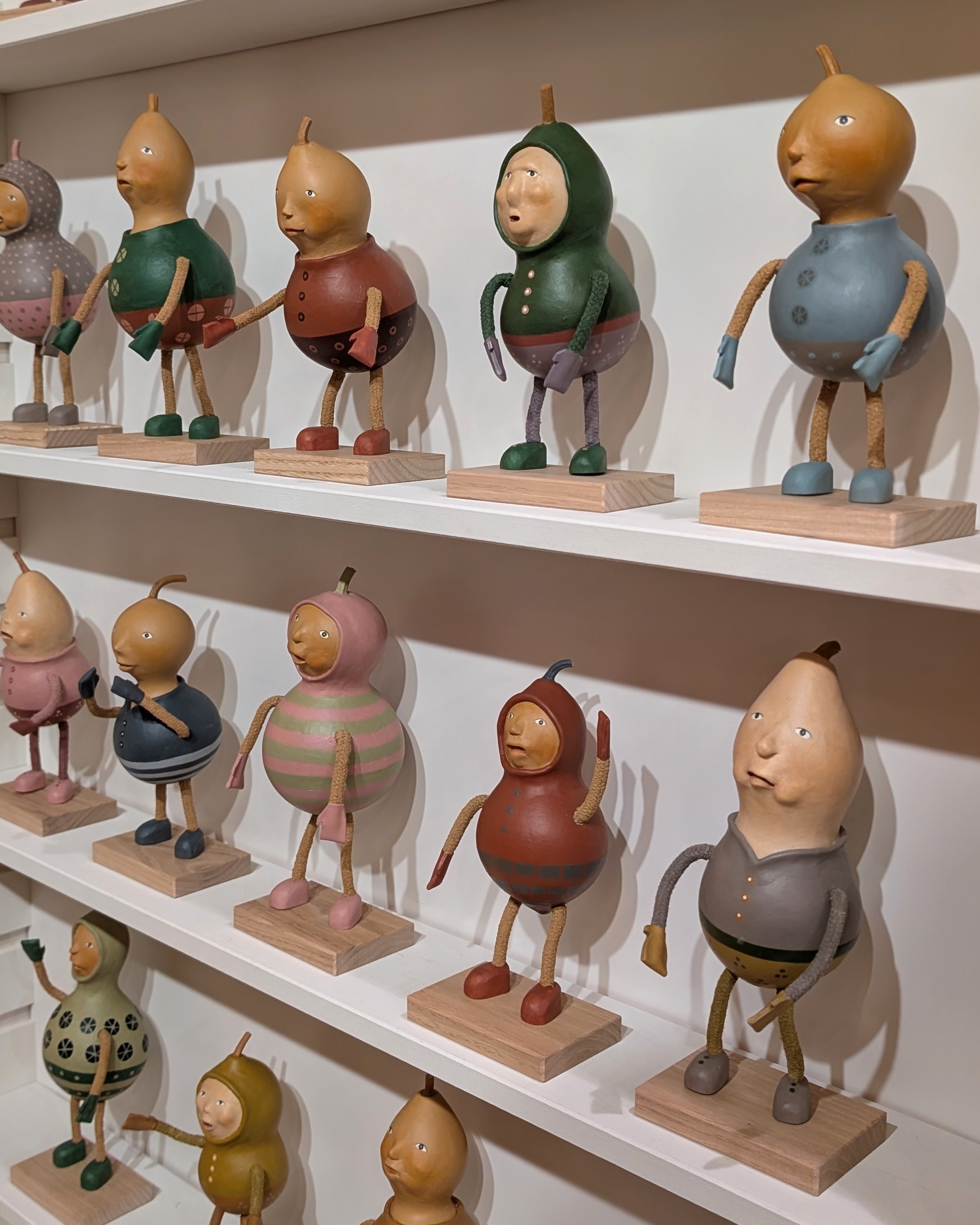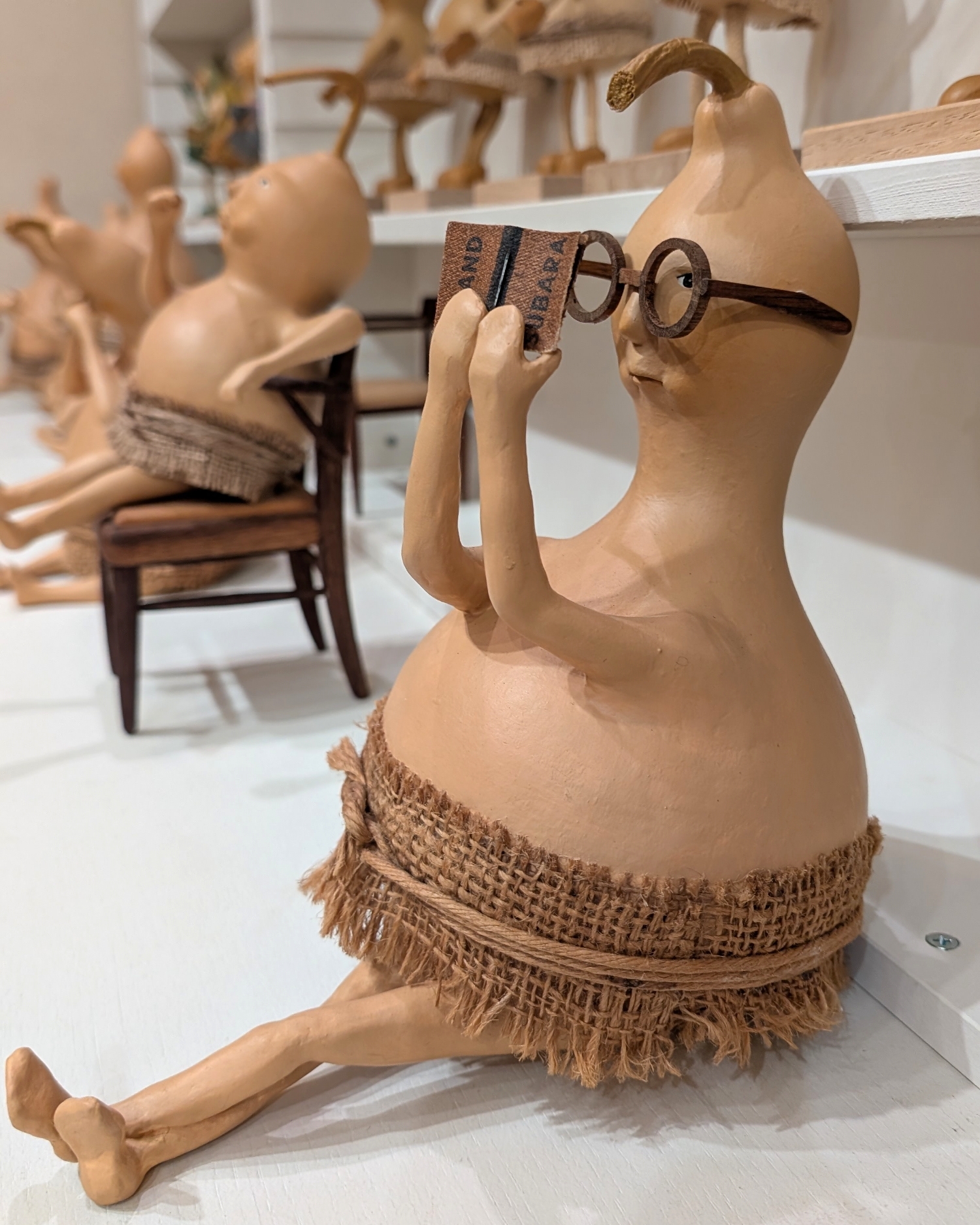 自家栽培してできた瓢箪から生まれた「ひょうたんビト」を中心に制作展開しています。 ひょうたんビトには原始的な「腰みの族」、オシャレ好きな「ロンパース族」、動物がヒト化した「アニマル族」がいます。 起き上がりこぼしの「ひょうたんコロリン」、吊り下げタイプの「ひょうたんブラリン」、首振り人形の「ひょうたん鳥」、ランプが仕込まれた「ひょうたんランプビト」など… すべての作品は本物の瓢箪の自然の造形を活かして製作しています。