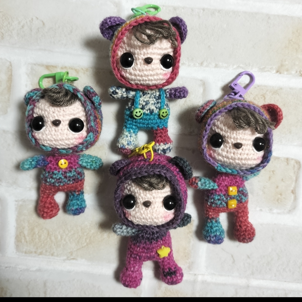 毛糸を使用したあみぐるみや羊毛フェルト作品を親子で一つひとつ手作業で仕上げ、表情やバランスに工夫した、思わずクスッと笑顔になる作品を心がけています。