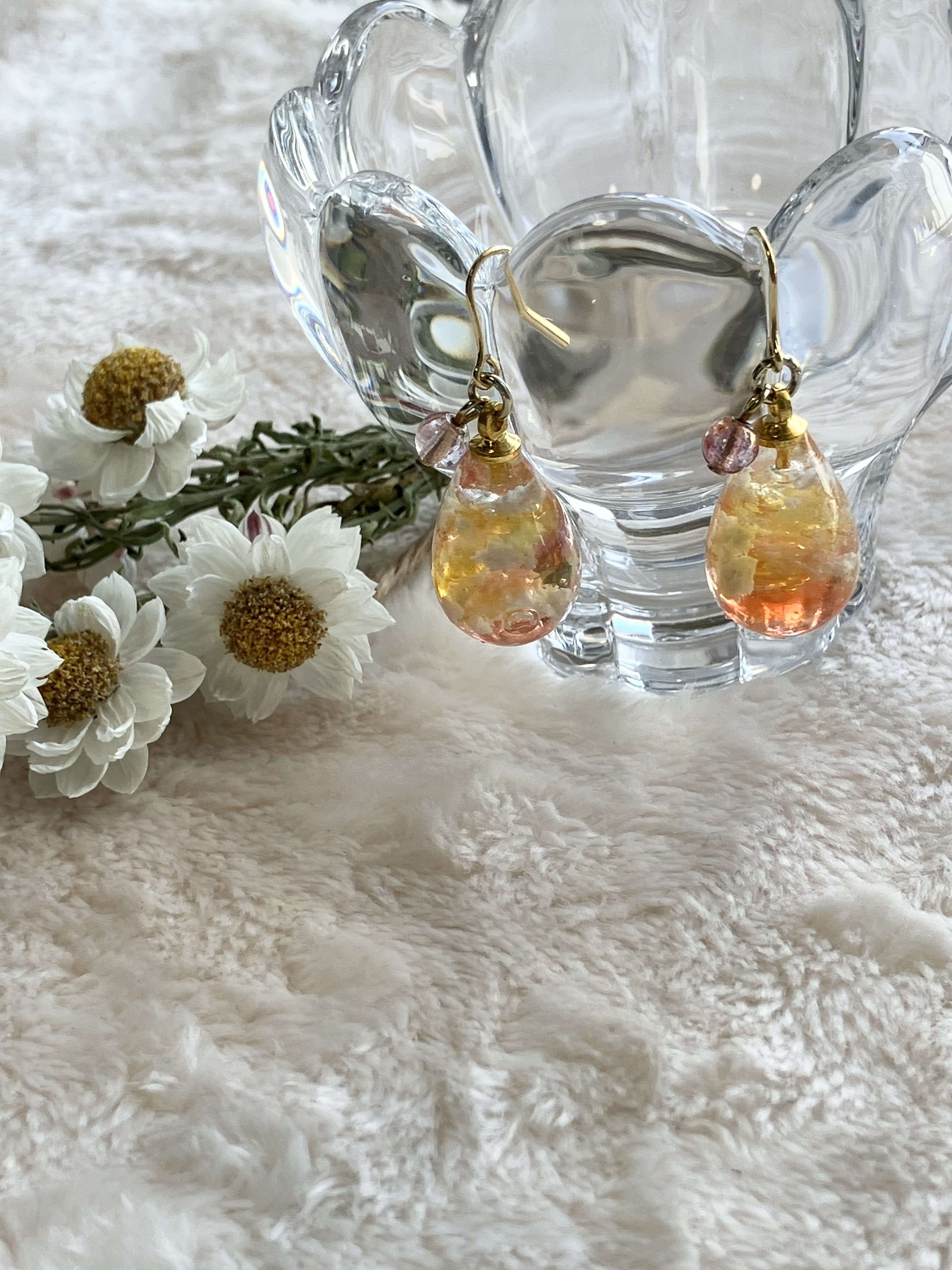 本物のお花を使ったものと空をモチーフにしたアクセサリーで、唯一無二のものばかりです。 お気に入りを身につけると笑顔になれる。だからこそ 頑張る人を笑顔にしたいという思いで作ってます。