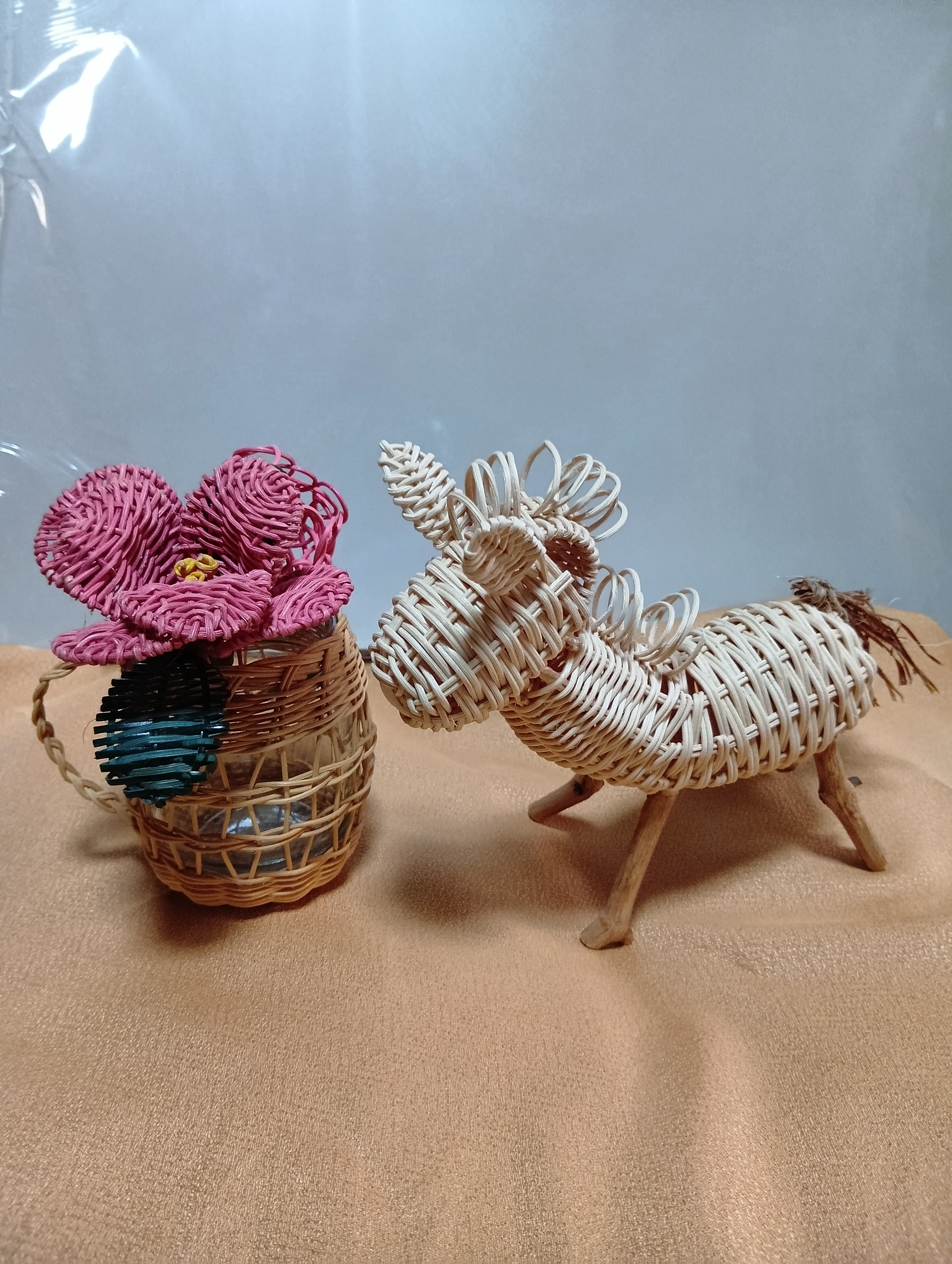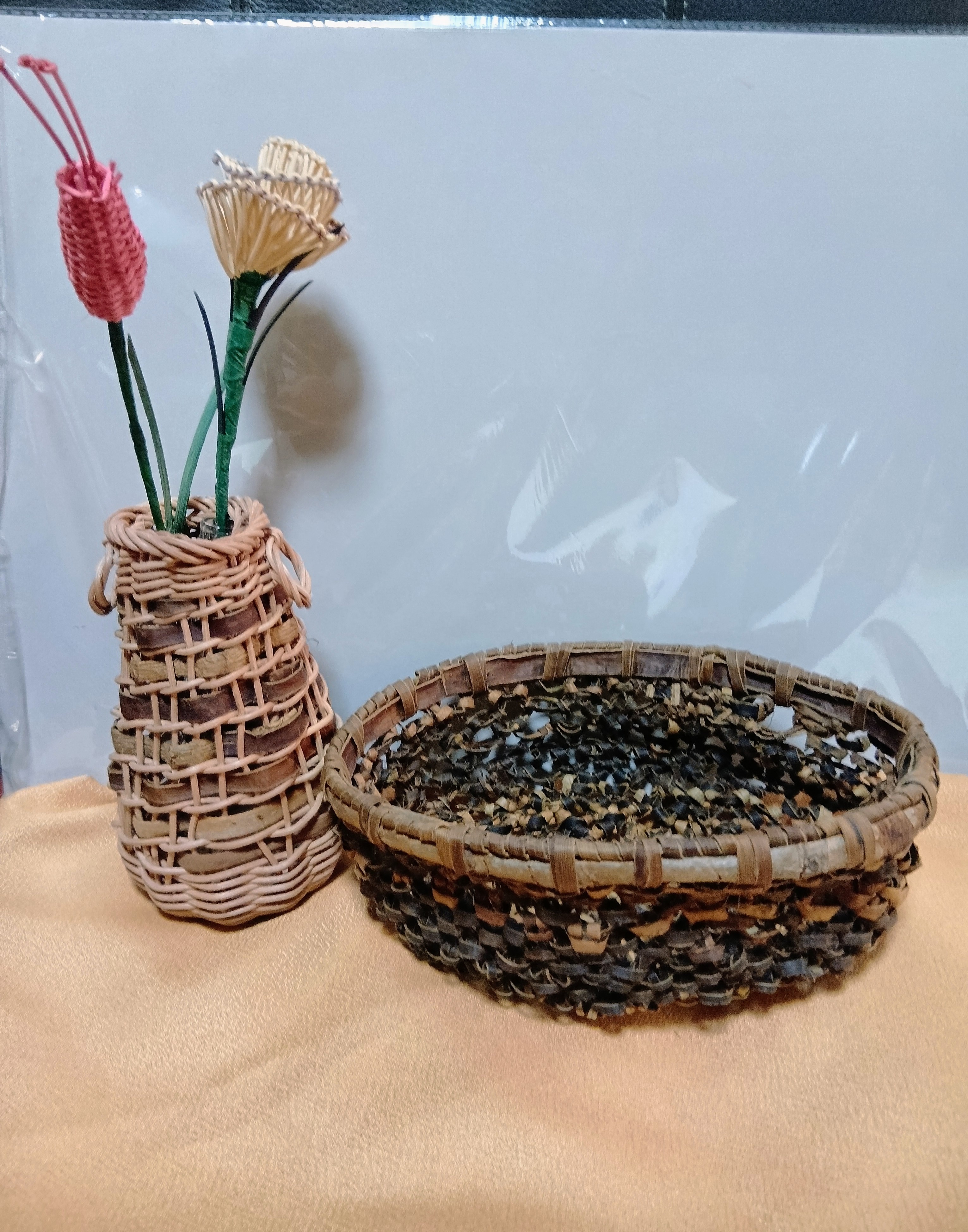 籐、つる、樹皮の籠 布小物