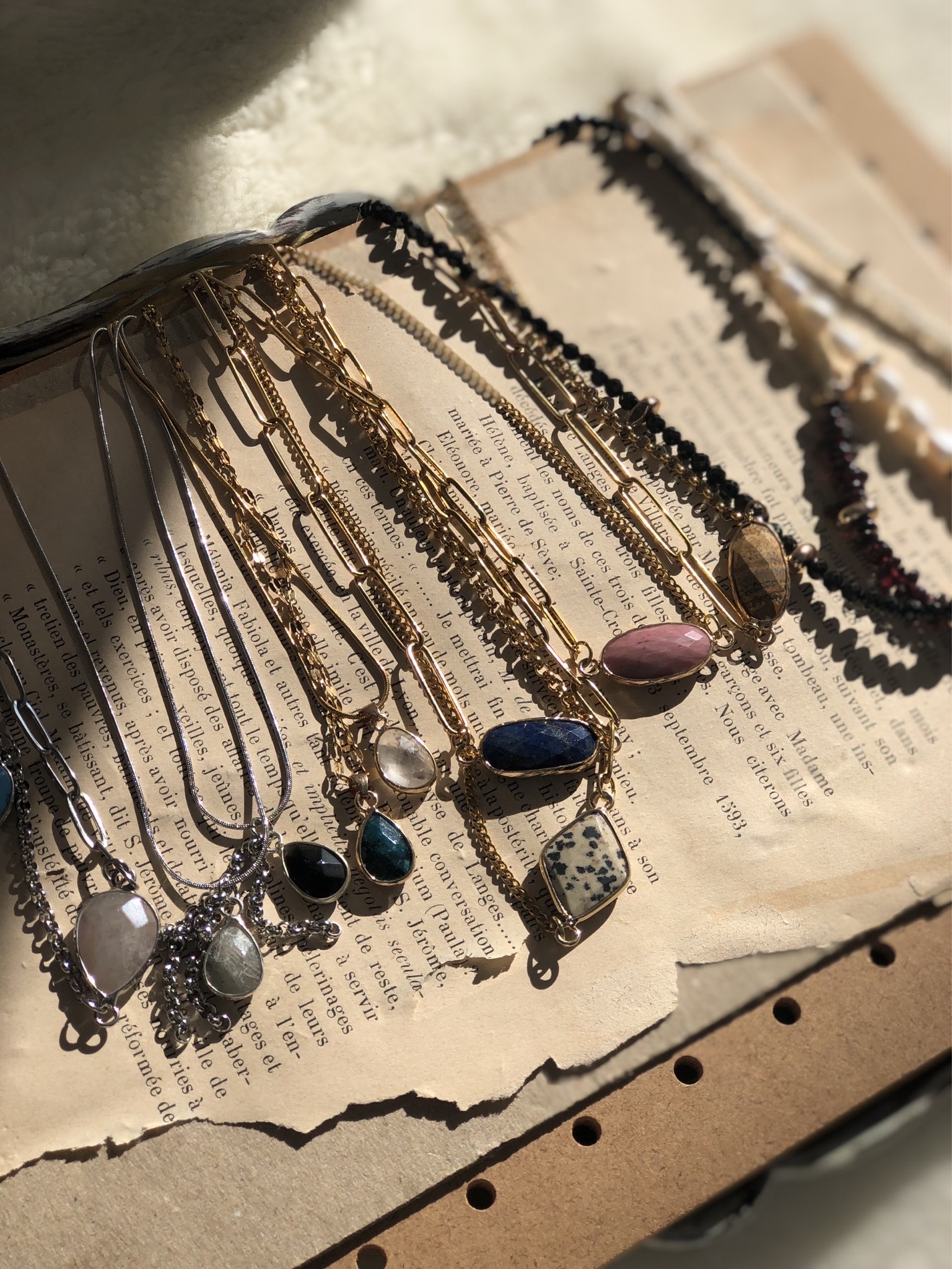 天然石アクセサリー、布物