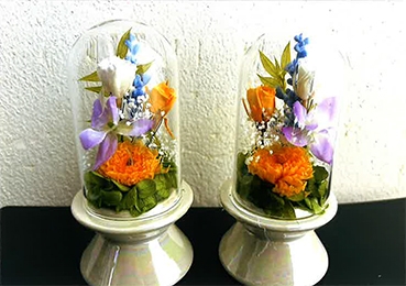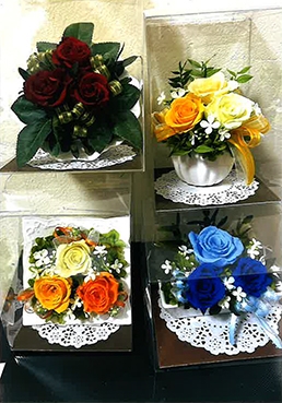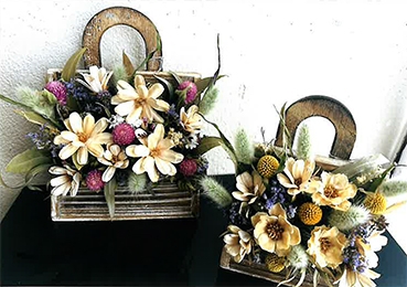 ドライフラワー、プリザーブドフラワー、アーティフィシャルフラワーを使用して作品を作っています。バランス、色合いに気を付けて手にとった人もプレゼントとして受け取った方も喜んで頂ける様な作品を作れればと思いながら作っています。