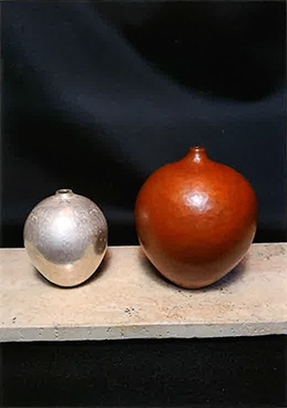 酒器、銀と鉄を使い酒器を制作。鉄はサビ付仕上。