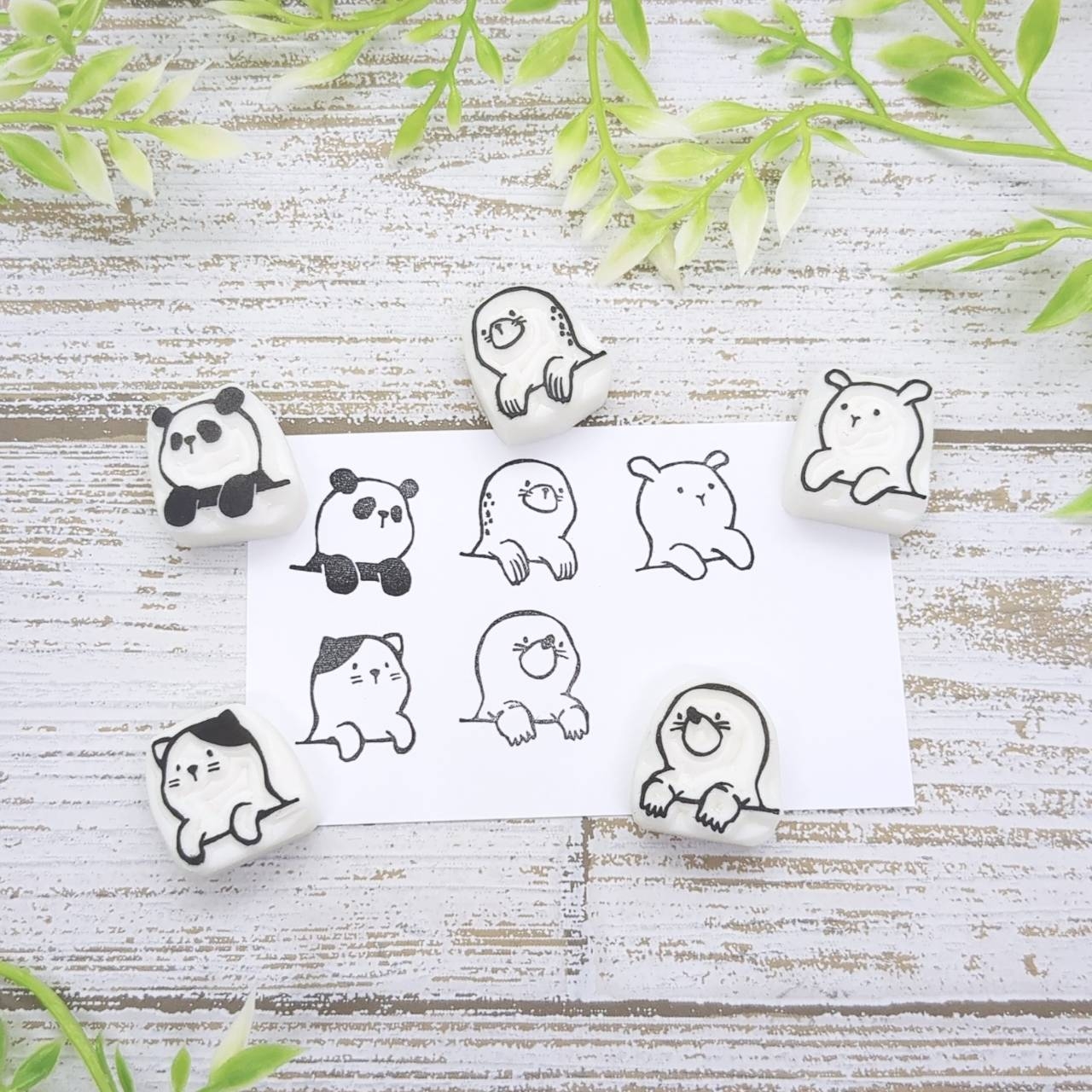 はんこ作家2人の合同ブースです。動物モチーフの手彫りの消しゴムはんこを中心に、可愛い文具雑貨もご用意します。
