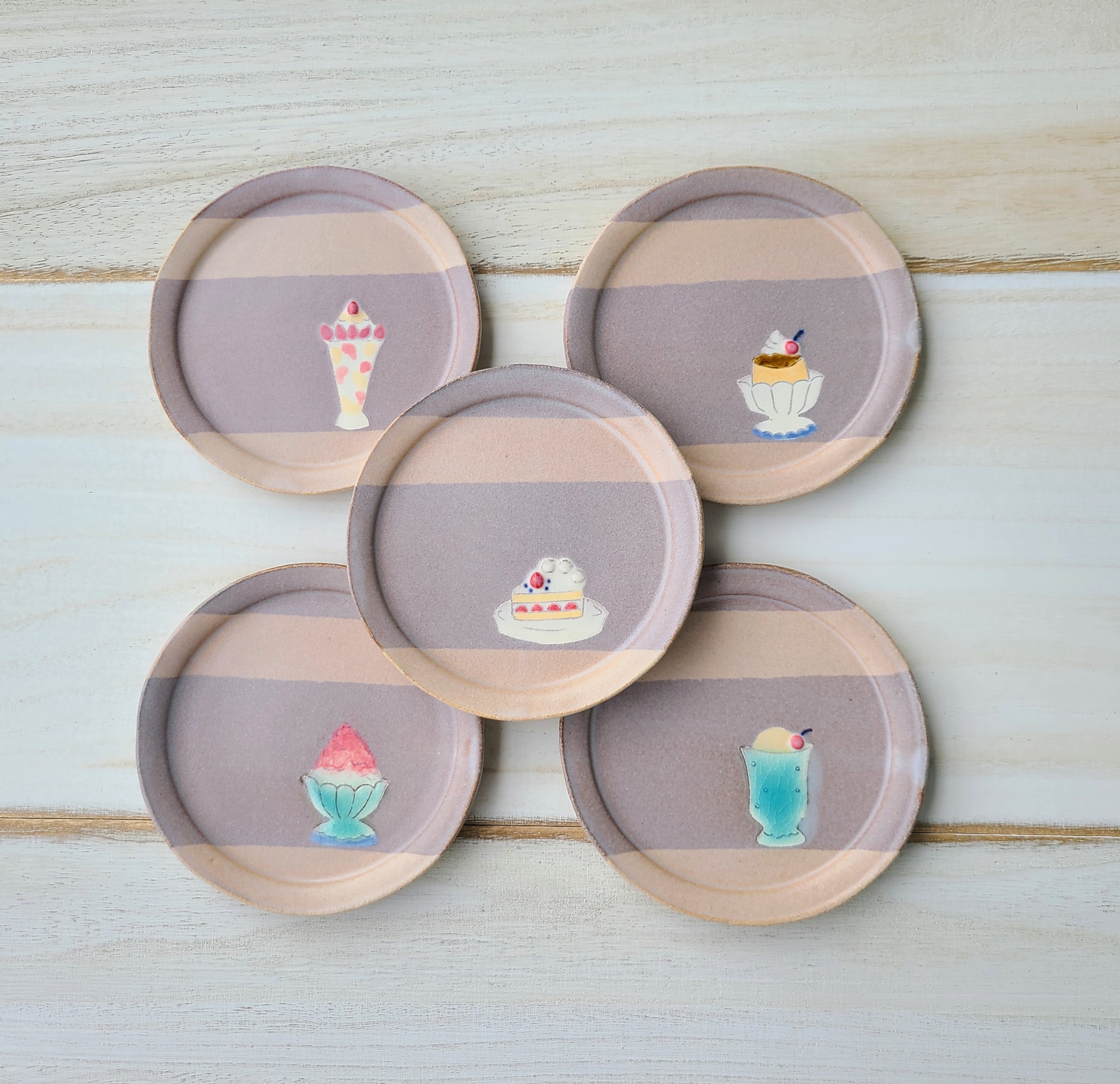 おやつの時間をテーマに、温かく優しい雰囲気の陶器を作っています。 土の持つ自然な色や風合いを活かしながら、お菓子のように美味しそうな雰囲気の陶器を制作しています。 お茶やおやつの時間が楽しくなる食器、ほっとする空間をつくるインテリア、アクセサリーなどを小さな工房でひとつひとつ手仕事で創り出しています。