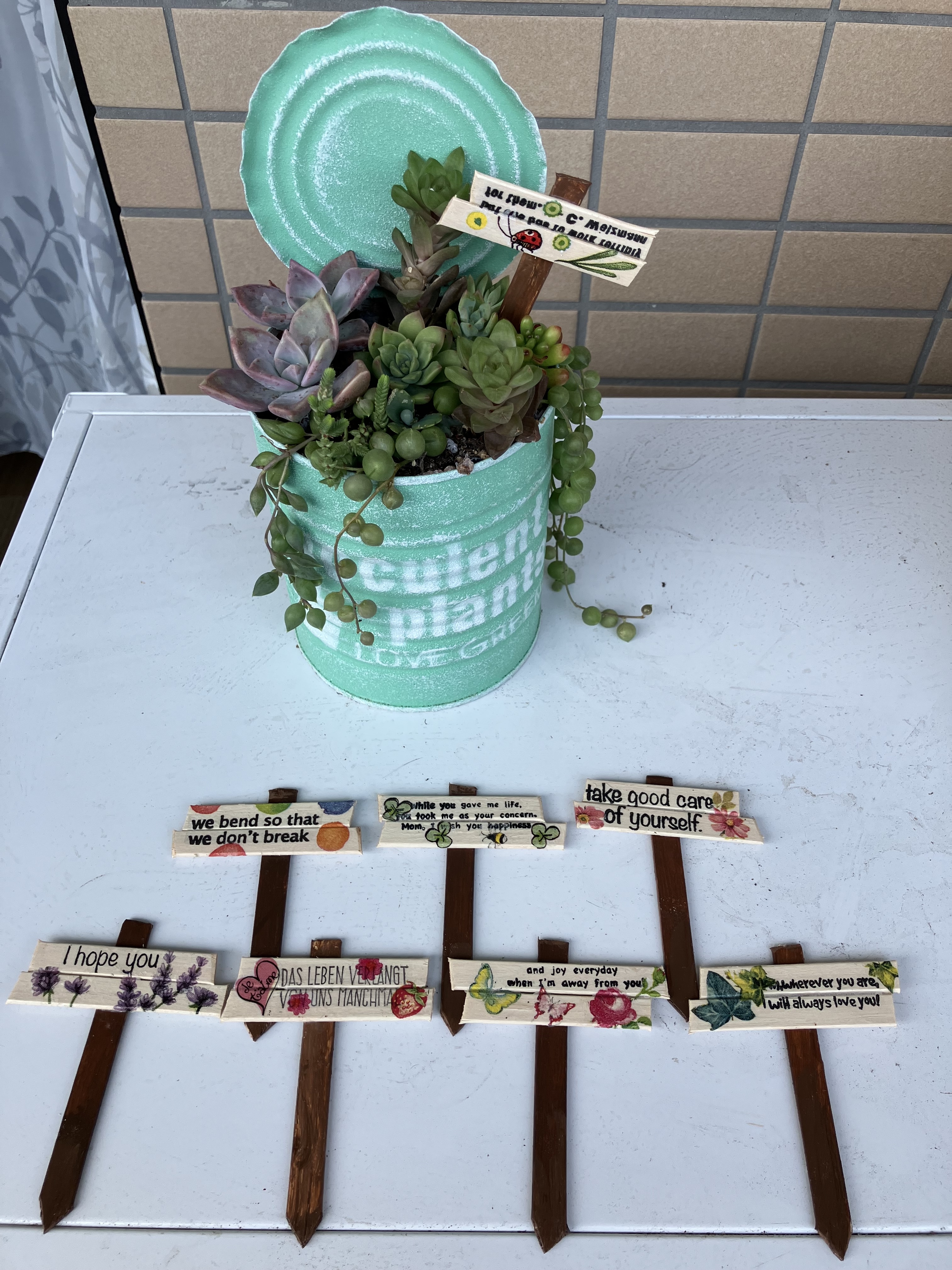 リメイク鉢、リメイク缶、ガーデンピック、花台など
