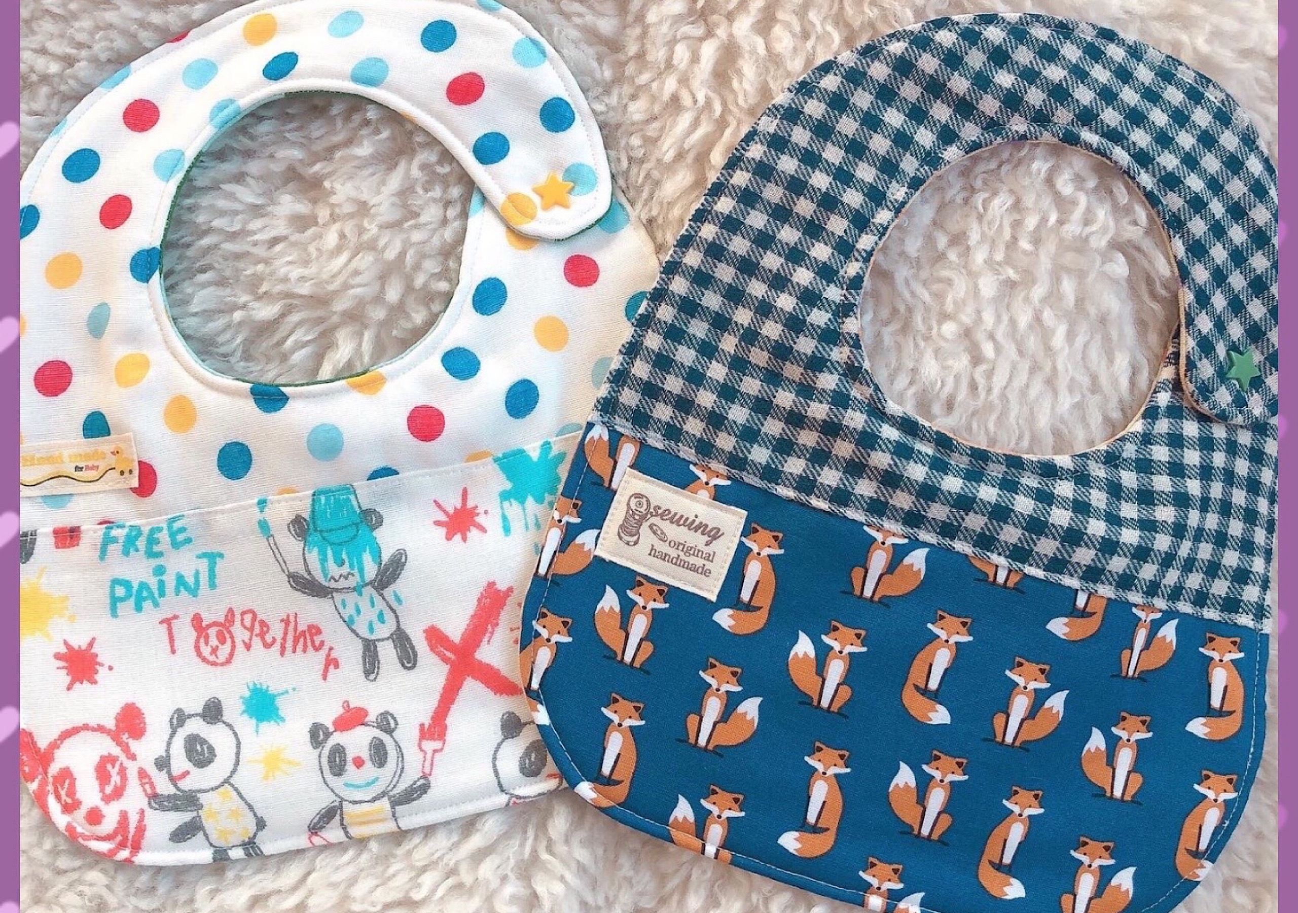 おしゃれで使いごこちがよいスタイなど育児が楽しくワクワクするようなベビー用品を作っております。綿100%のガーゼを使用しており、中には柔らかいバスタオルを挟んで縫ってあるので肌触りよく、吸水もバッチリで使いやすいスタイです。縫い上がりに検品も1枚1枚丁寧におこなっております。