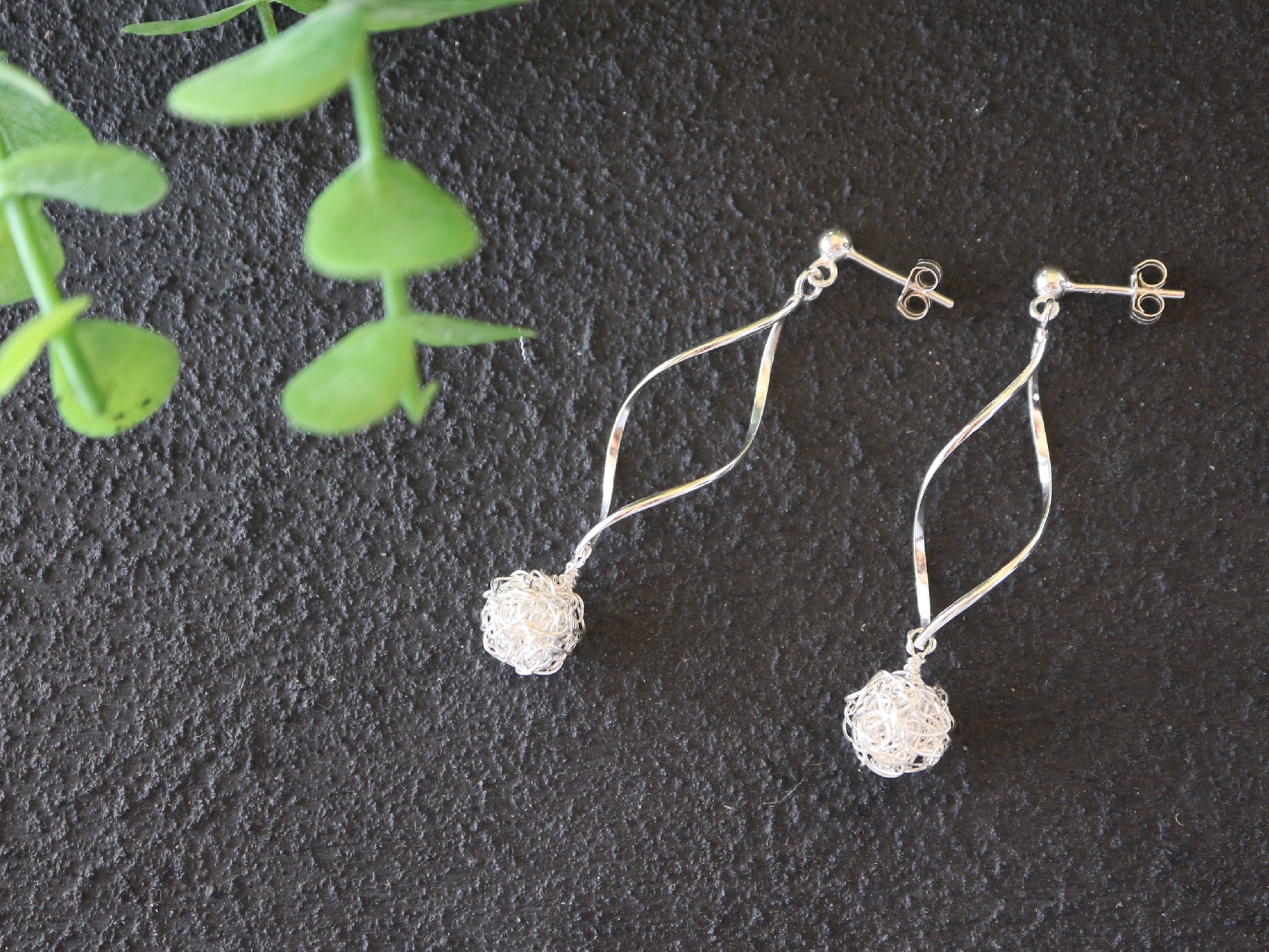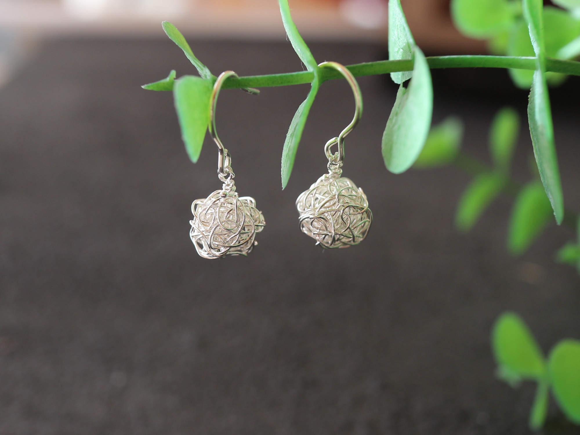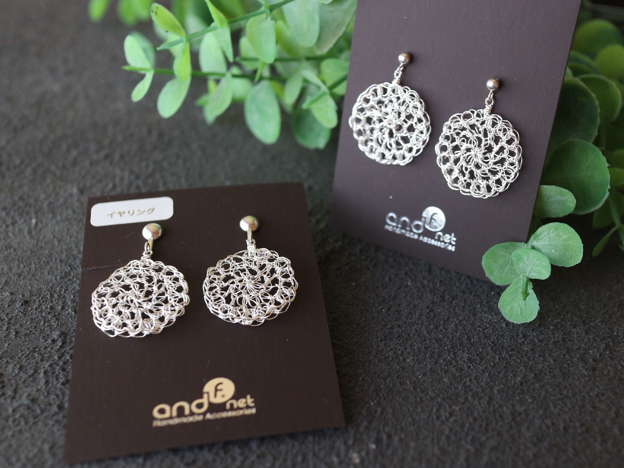 純銀線をかぎ針でレースのように編んだアクセサリーを作っています。 使っている素材は、天然石や、淡水パール、スワロフスキーなど・・・。 見た目は繊細だけど、存在感のあるアクセサリーです。