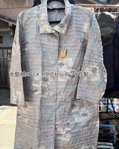 日本古来の大島紬の着物リメイクで、現代風なおしゃれなデザインに作製しております