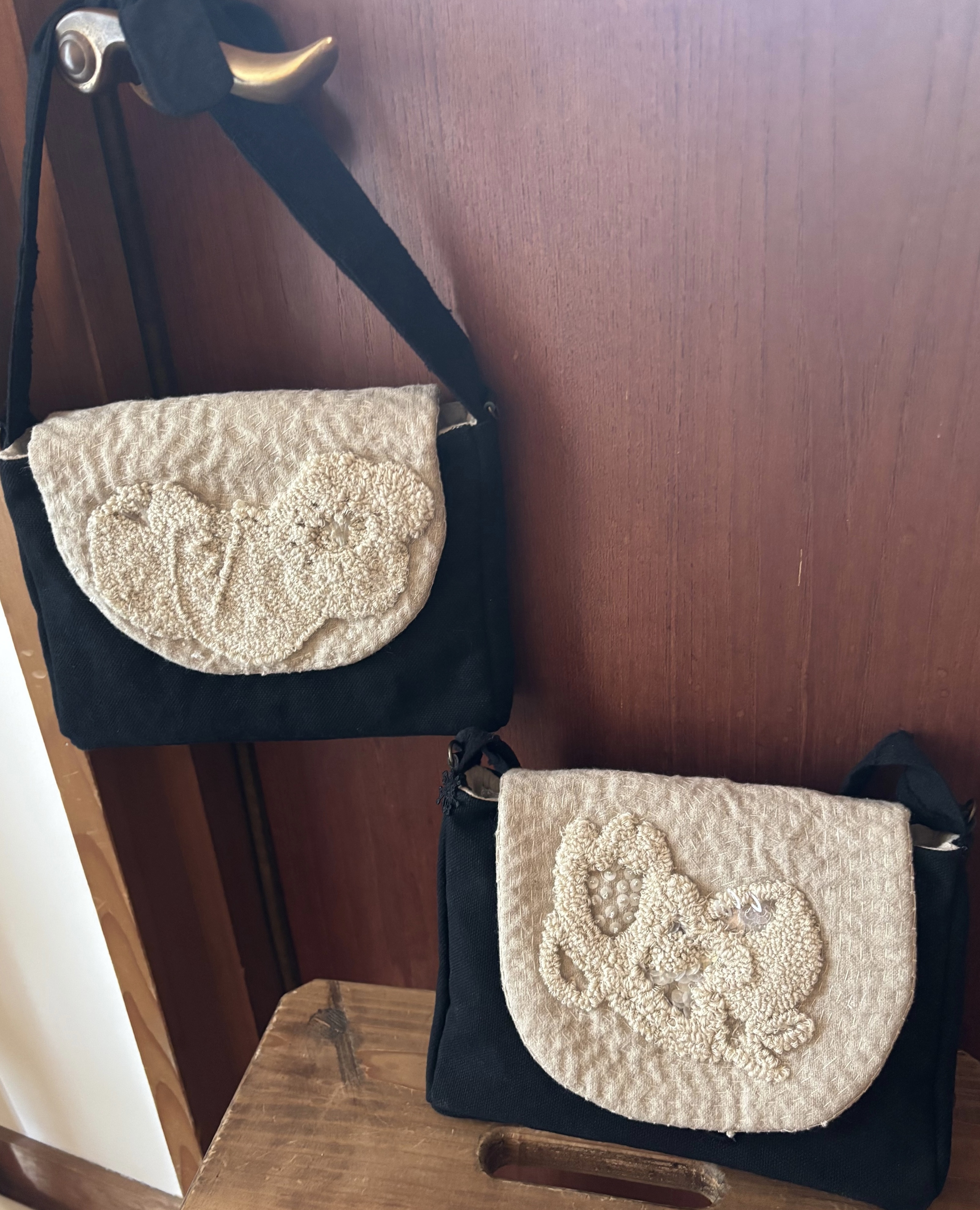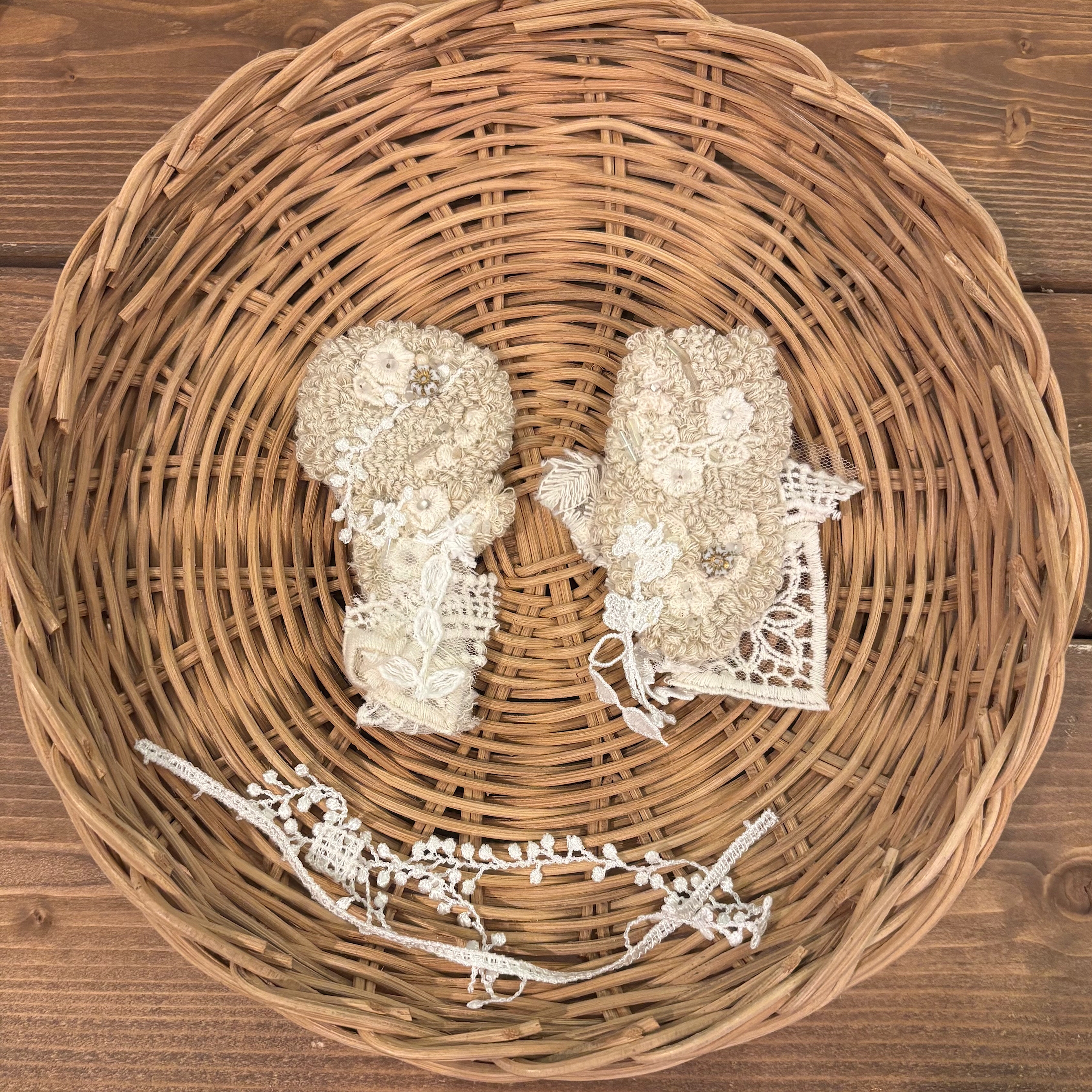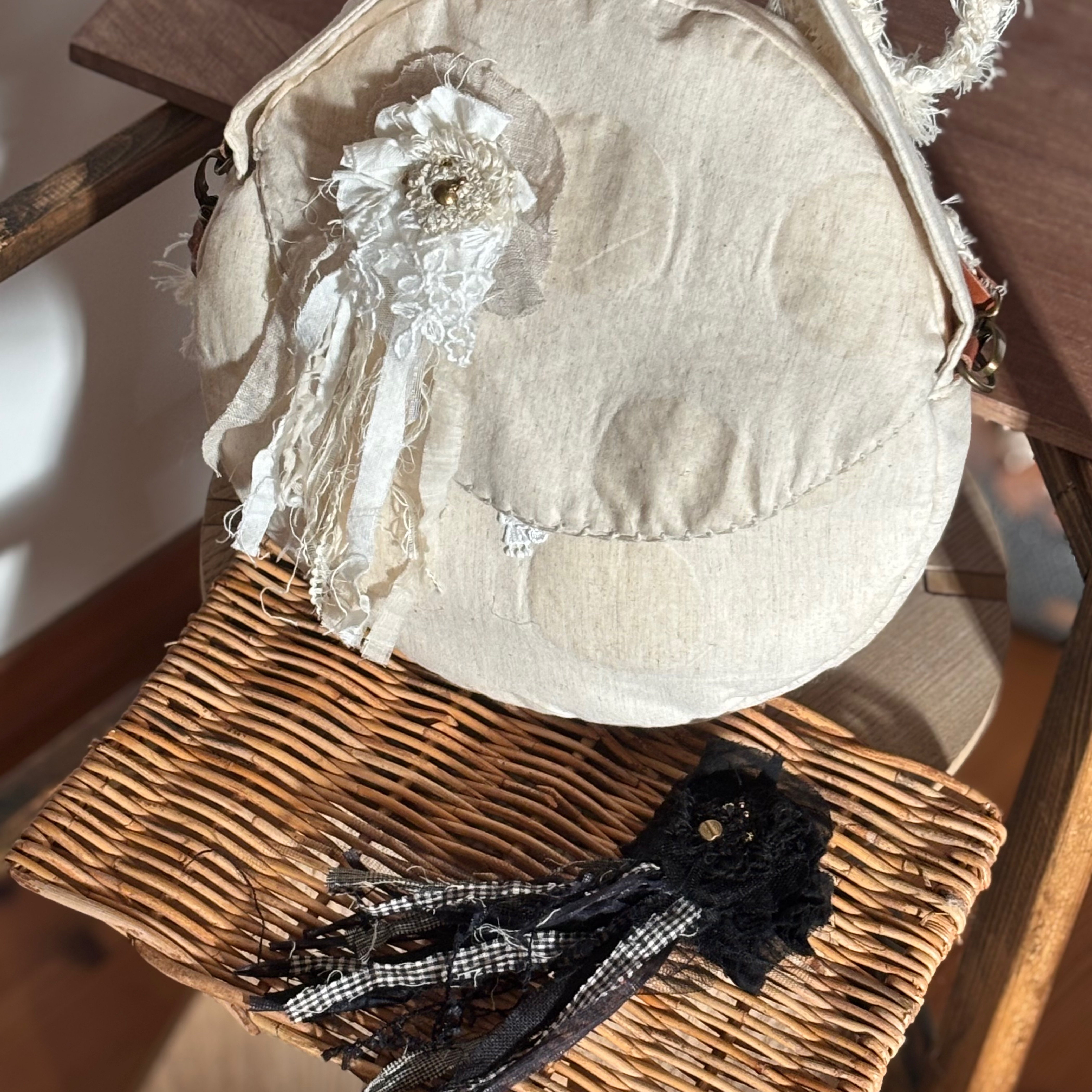 yuyala パンチニードル刺繍で装飾した、かごやバック 異素材、ビンテージパーツで着飾るブローチ elechika ラフィア(ラフィア椰子の葉を加工した天然素材)を編んで 作ったバッグや帽子 雑貨など